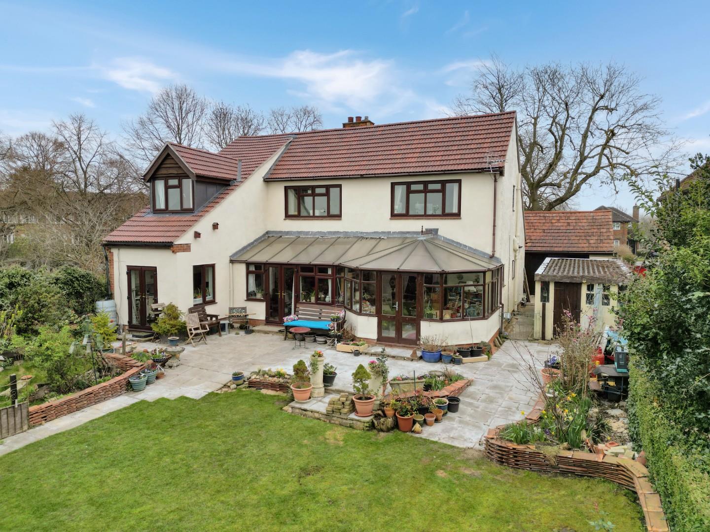 The established rear garden is fully enclosed and benefits from an array of herbaceous borders and raised beds. Off the rear of the property is a substantial patio area, ideal for alfresco dining in the warmer months of the year. The remainder of the garden is predominantly laid to lawn and to the far end of the plot is a heated swimming pool underneath a cover.