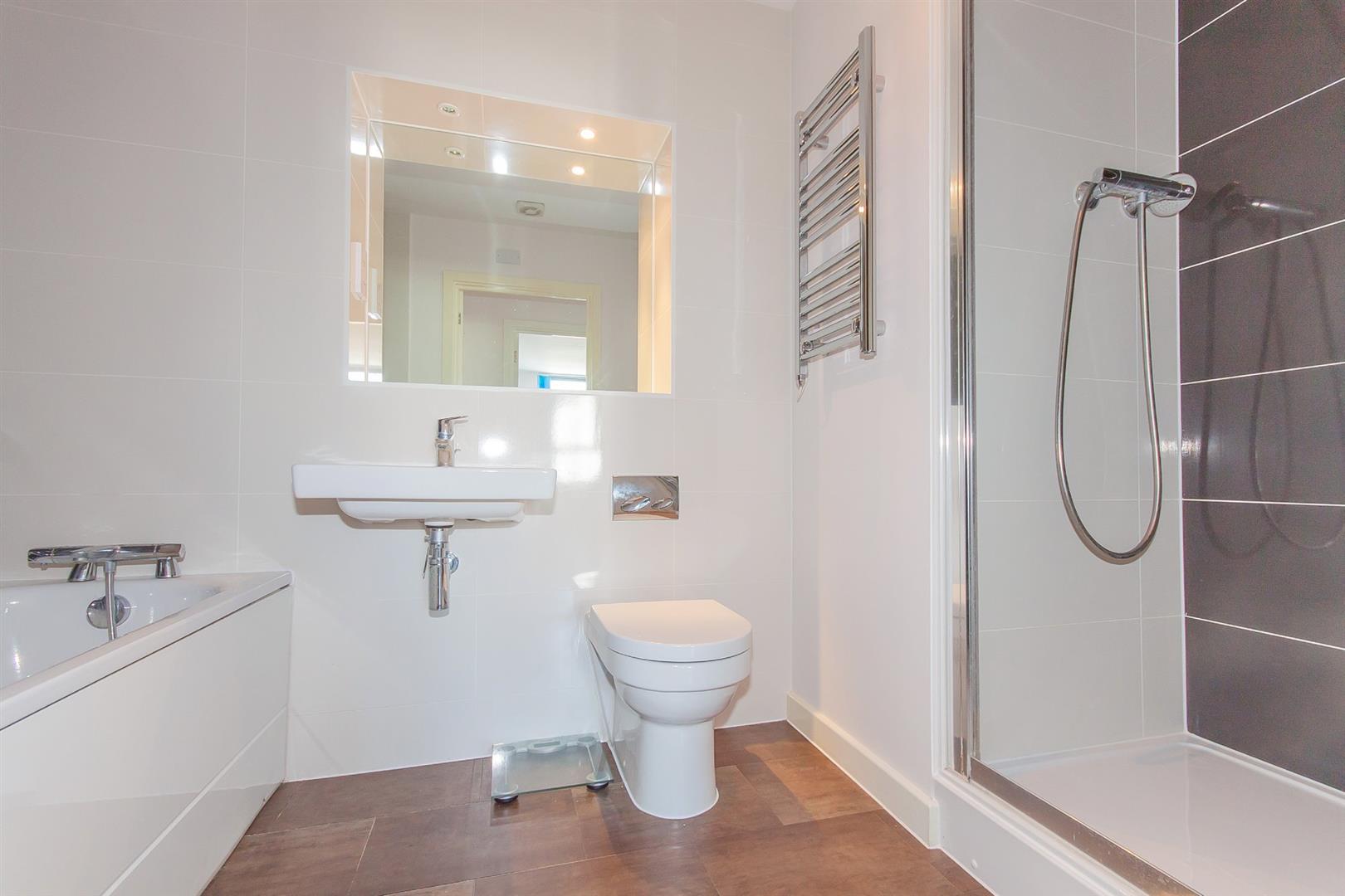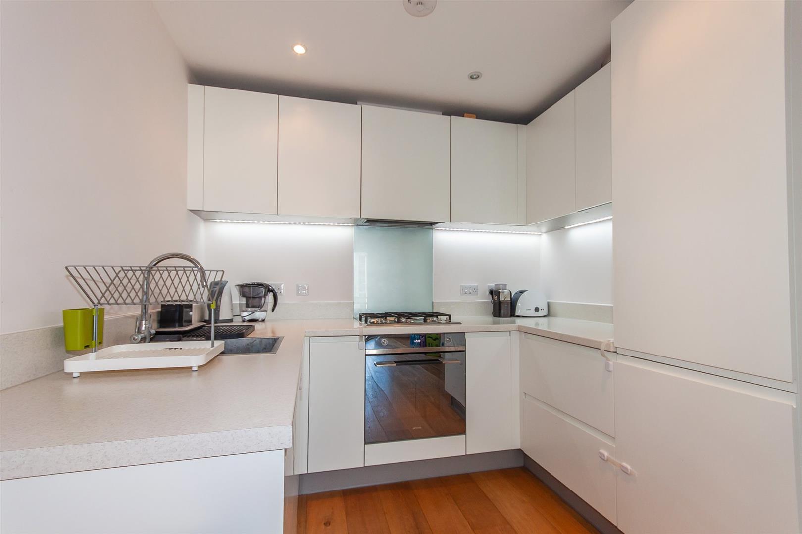 The accommodation comprises a welcoming entrance hall leading into a bright and contemporary open-plan living and kitchen area, complete with integrated oven, hob, fridge freezer, washing machine and dishwasher. The living space opens onto a private balcony, offering an ideal spot to relax. There is a generous double bedroom with built-in wardrobes and a modern bathroom fitted with a shower over the bath, WC and basin.