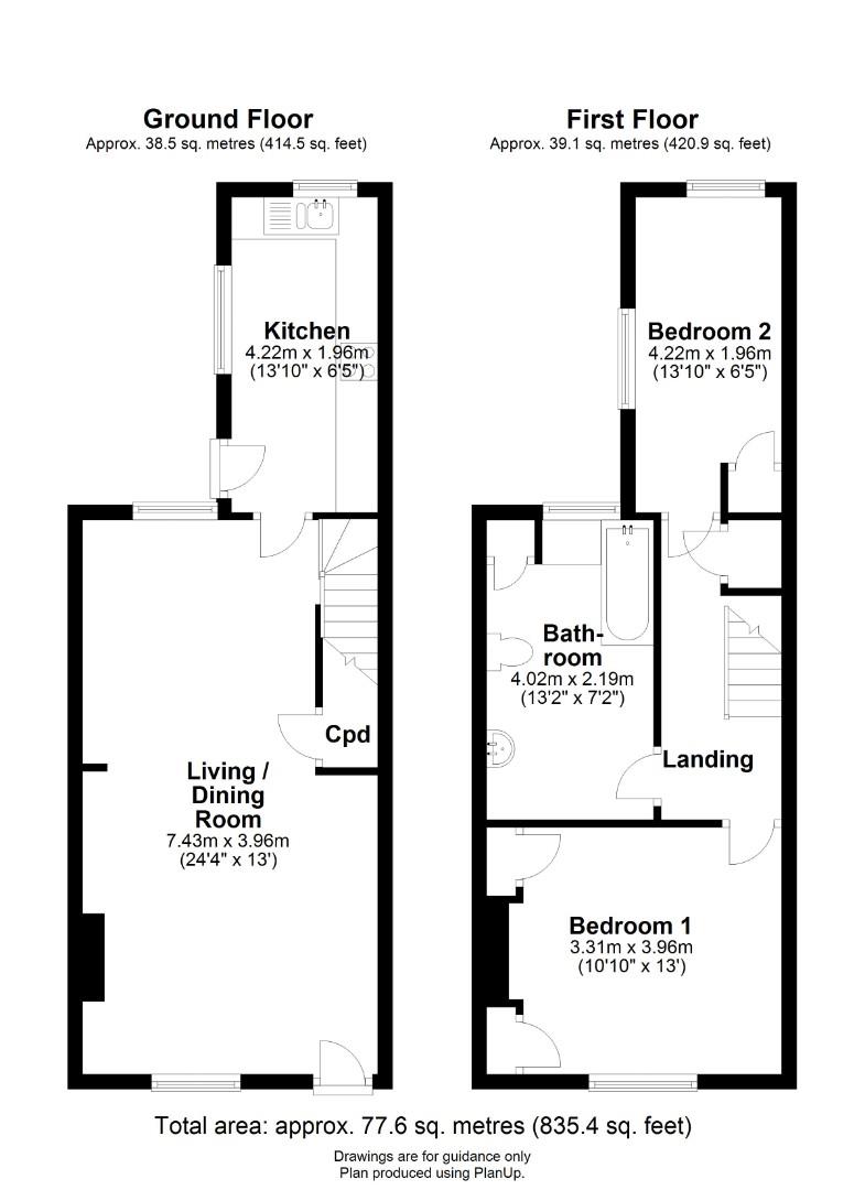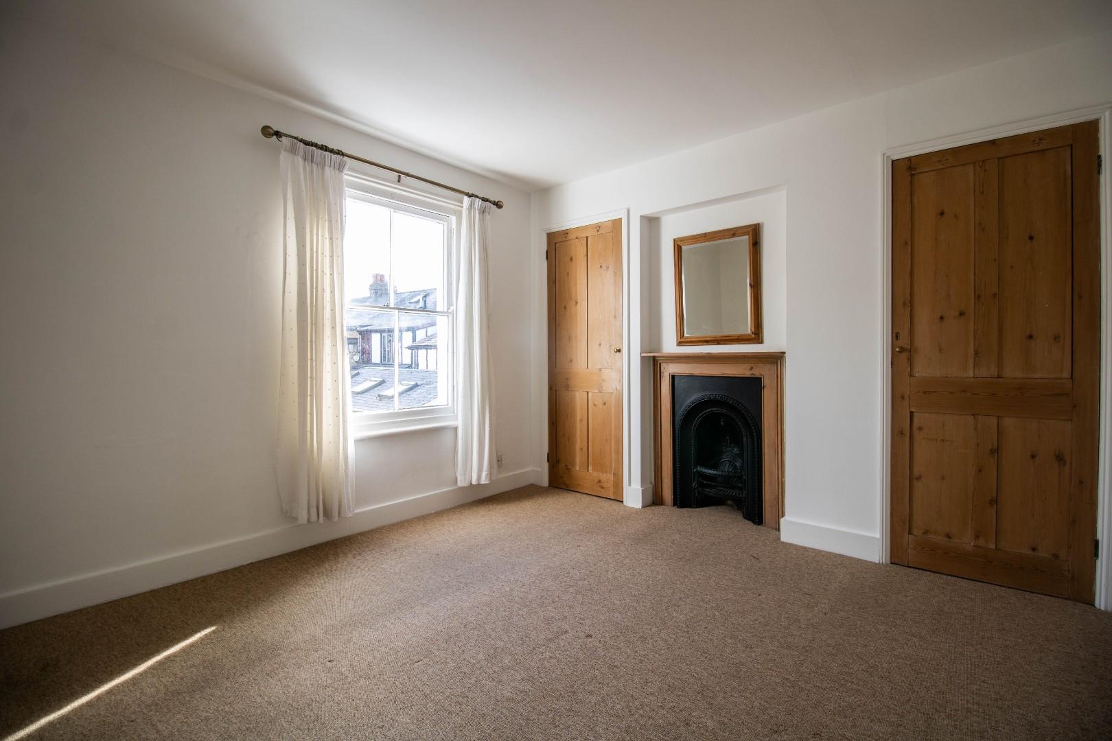 Upstairs are two bedrooms; the master is particularly spacious and includes a feature fireplace. Both rooms have built-in storage cupboards and the landing provides access to a partially-boarded loft, which has a pull-down ladder. Finally, the bathroom has been fitted with a modern white suite including a shower over the bath.