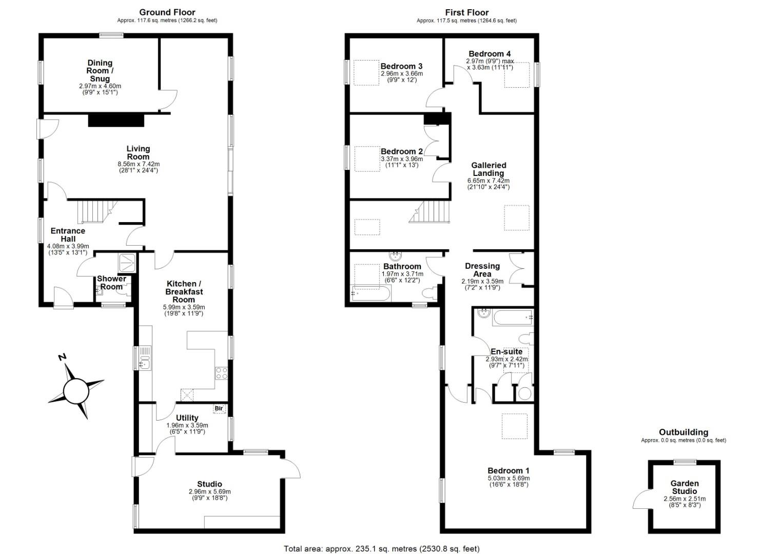 A wonderful galleried landing provides an additional study space and separates three double bedrooms from the family bathroom suite and principal bedroom area. The principal bedroom has a separate dressing area with built-in wardrobes, a large ensuite bathroom.