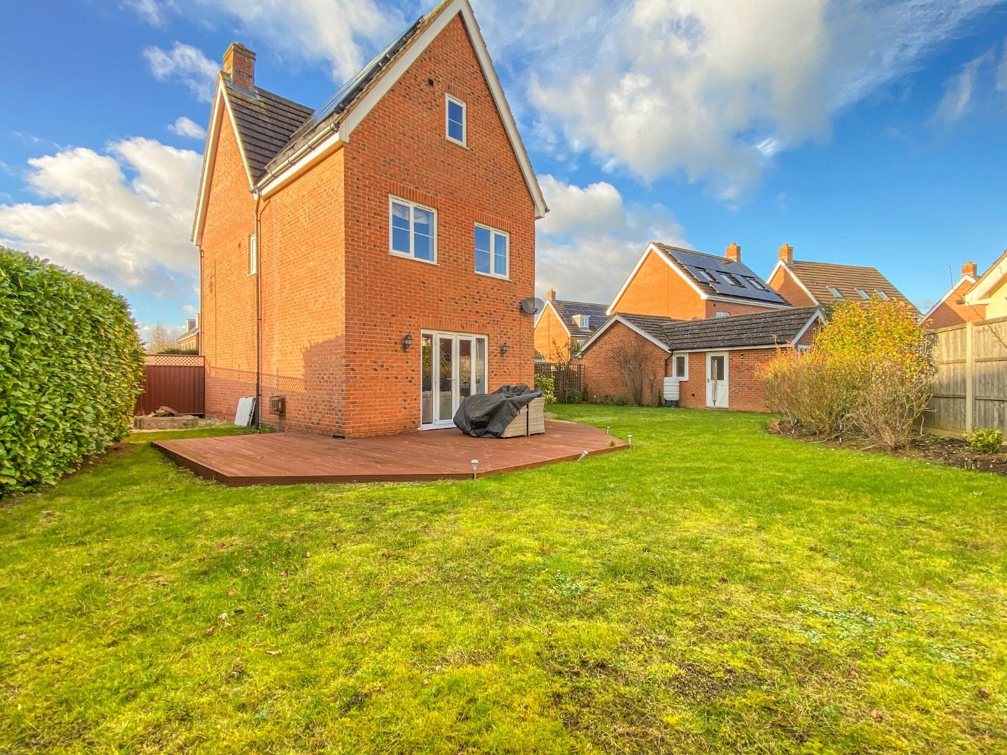Externally – To the front of the property is a small front lawn area with an established hedge row either side and a paved pathway leading to the front door. A driveway is located to the side of the property and benefits from a EV-charging point and in turn leads on to the detached garage. The rear garden is fully enclosed, largely with maintenance free, long lasting metal fence panels, is laid predominantly to lawn and has a decking area accessible off the living room. To the rear of the garage is a brick-built studio which benefits from power and lighting and is currently used as a snug/tv room.