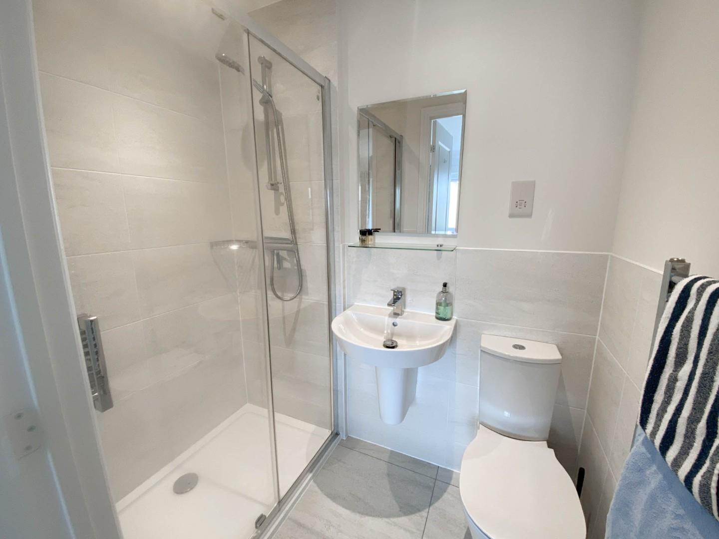 Upstairs, there are three good sized double bedrooms, all with en-suite bathrooms plus bedrooms one and two have fitted wardrobe cupboards. An airing cupboard provides additional storage space and includes the pressurized hot water cylinder capable of providing plenty of hot water.