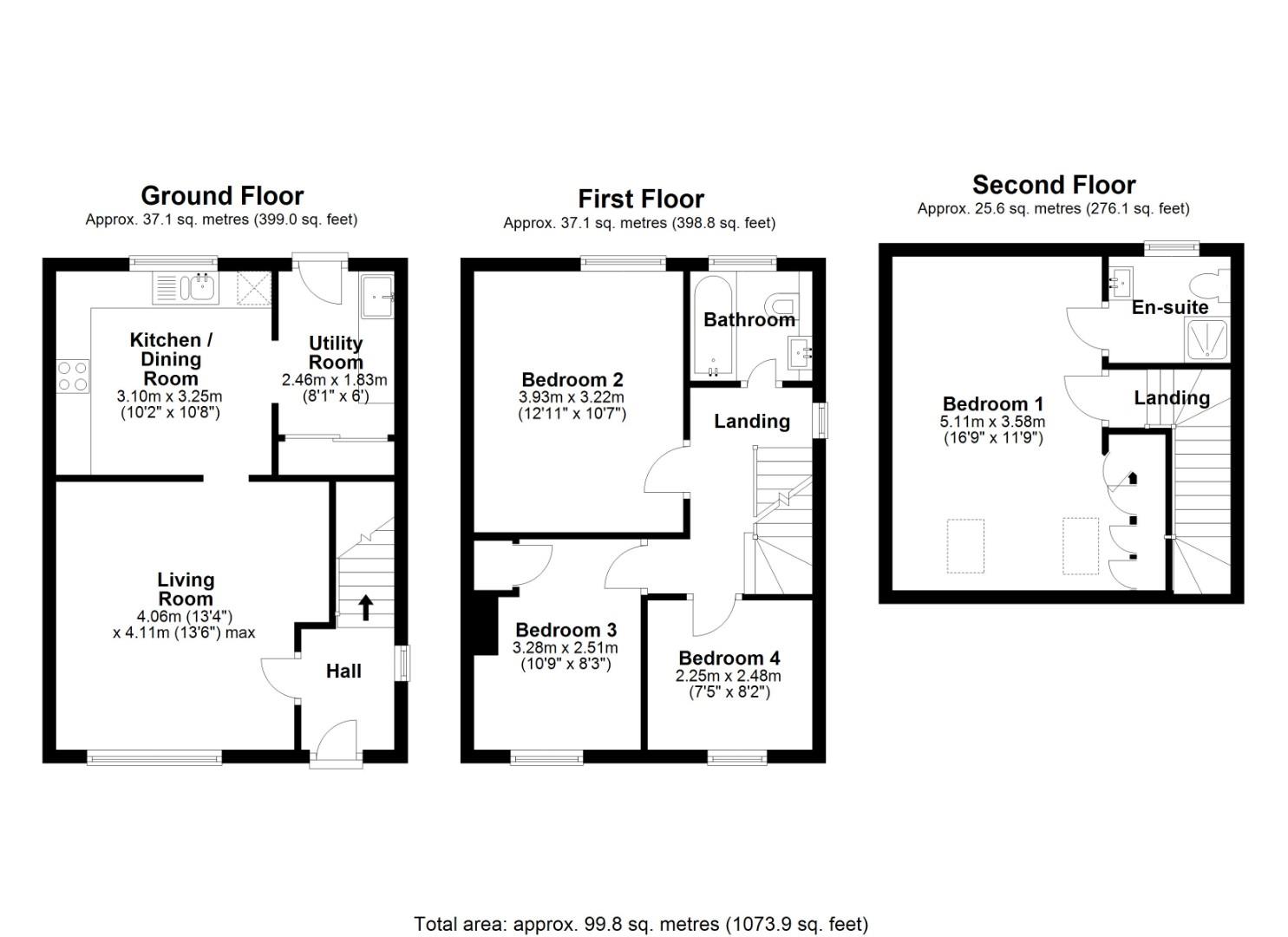 On the ground floor is an entrance hall with stairs to the first floor. The living room is finished with attractive LVT flooring, and the kitchen/dining room has been fitted with a stylish range of base and eye-level units; integrated appliances include an oven and gas hob with an extractor over. On the first floor are three bedrooms, two of which are comfortable doubles and modern family bathroom, on the second floor is the principal suite with en suite shower room.