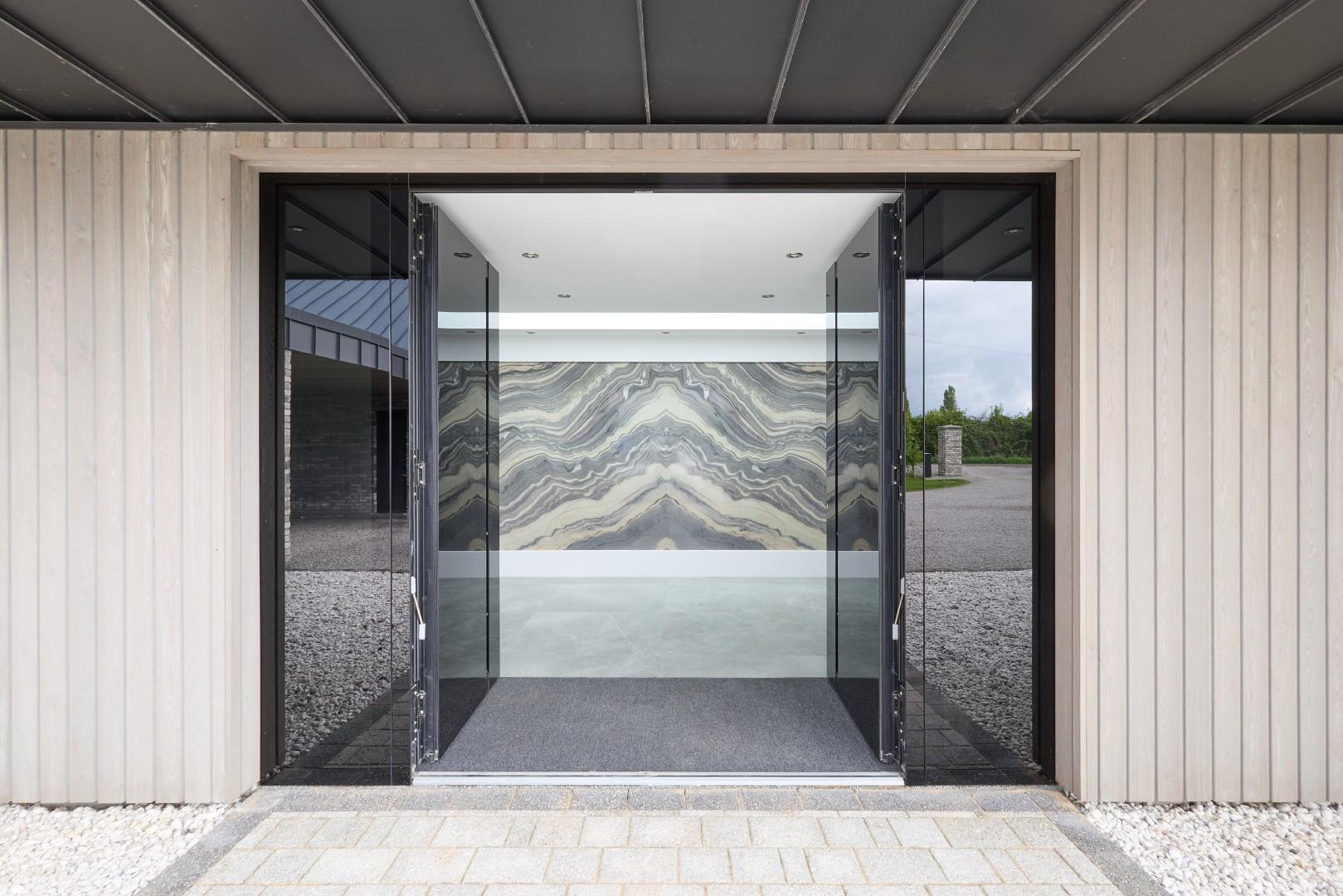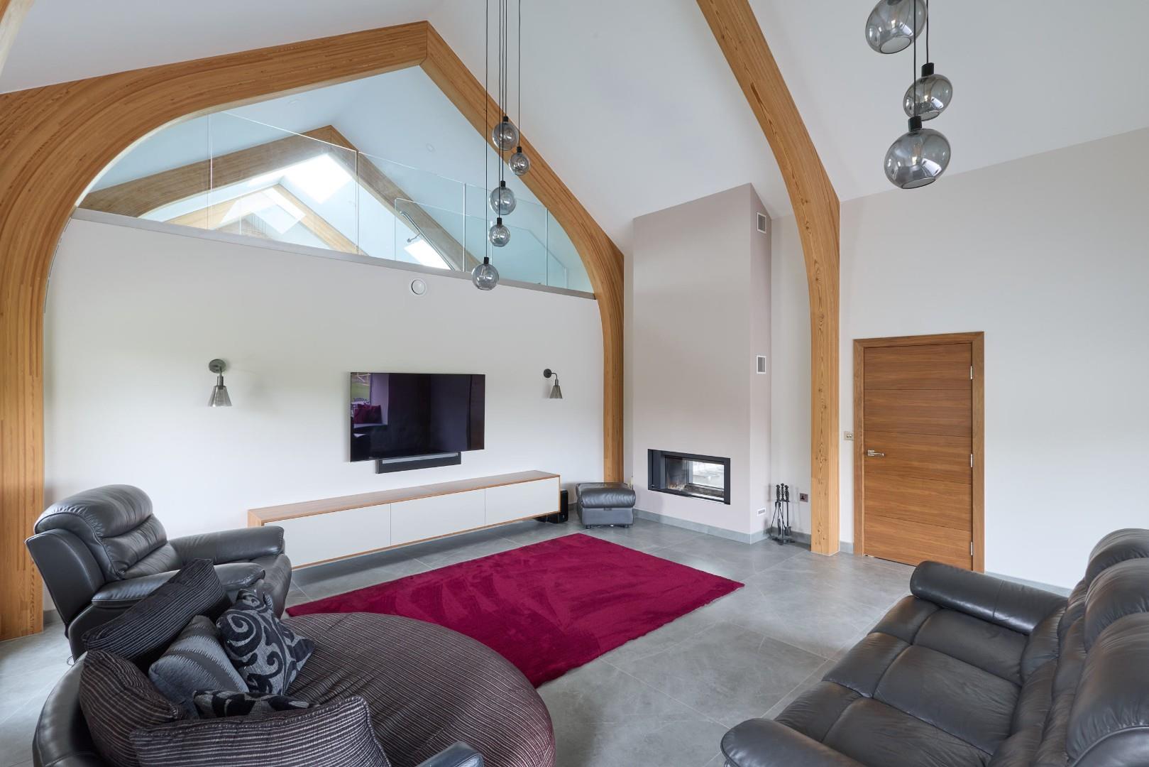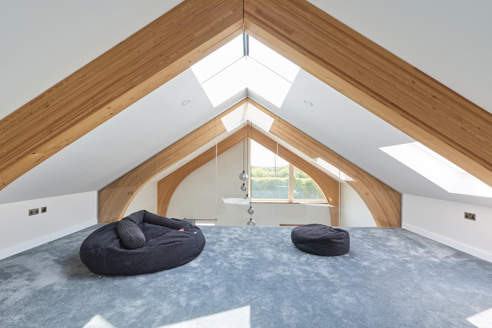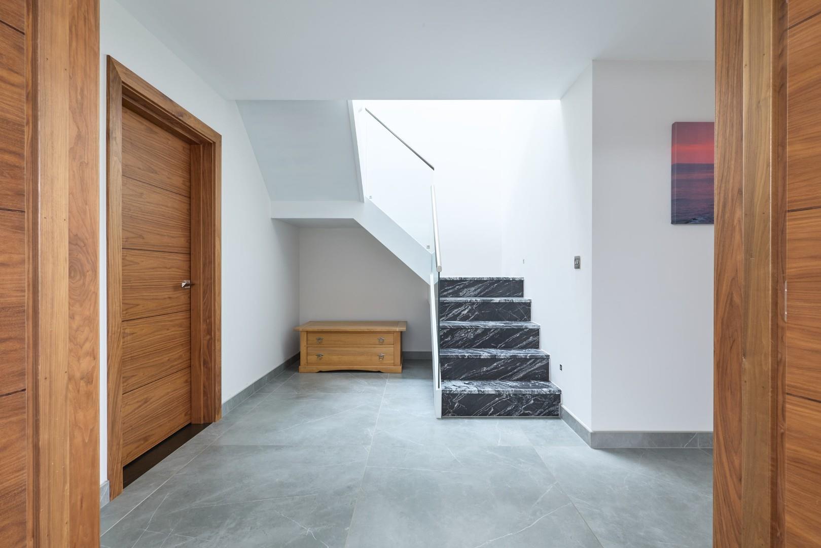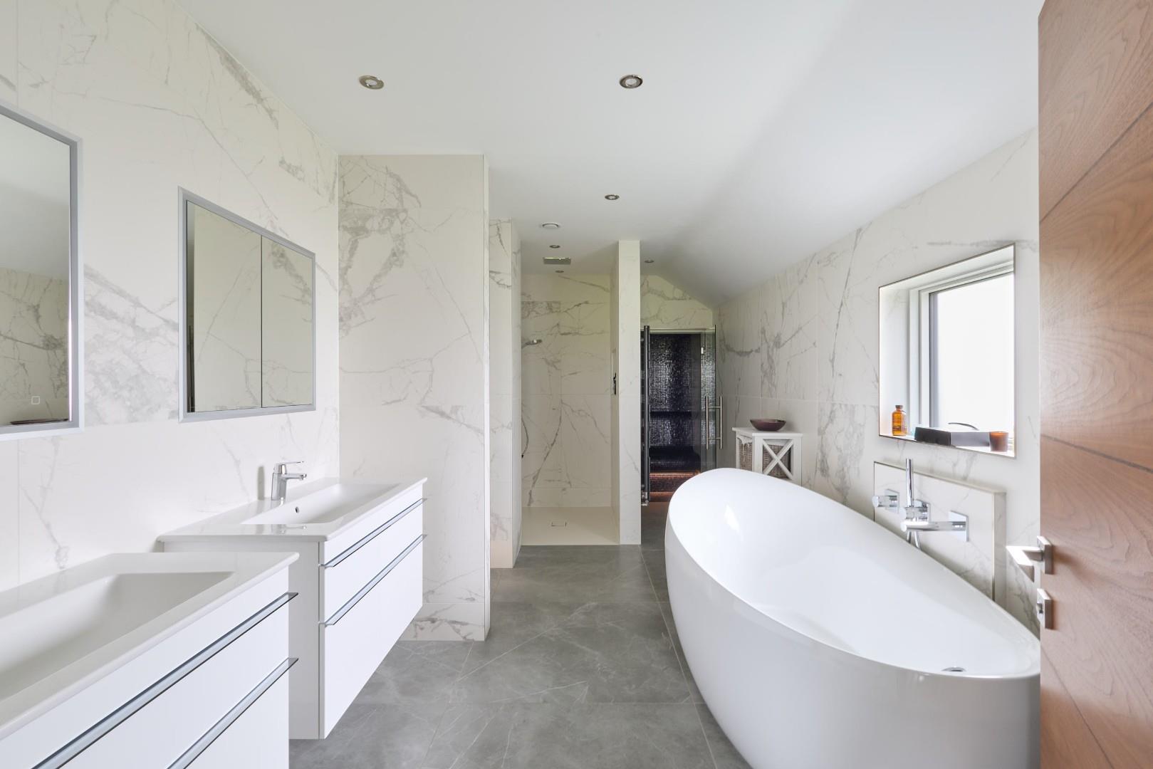 • Architect designed modern house, constructed in 2022 • Impressive reception hall with bespoke Italian marble wall • Spacious open plan kitchen /dining room / family room • Living room • TV room • Study • Mezzanine/snug • Utility room/second kitchen • Boot room • Principal suite with walk-through dressing room and luxury ensuite with steam room • 4 further en-suites bedrooms • Detached outbuilding/games room, with sound proof studio and covered outdoor kitchen • Car port • Double garage • Air source underfloor heating • Triple glazing windows and doors • CAT 5 wiring