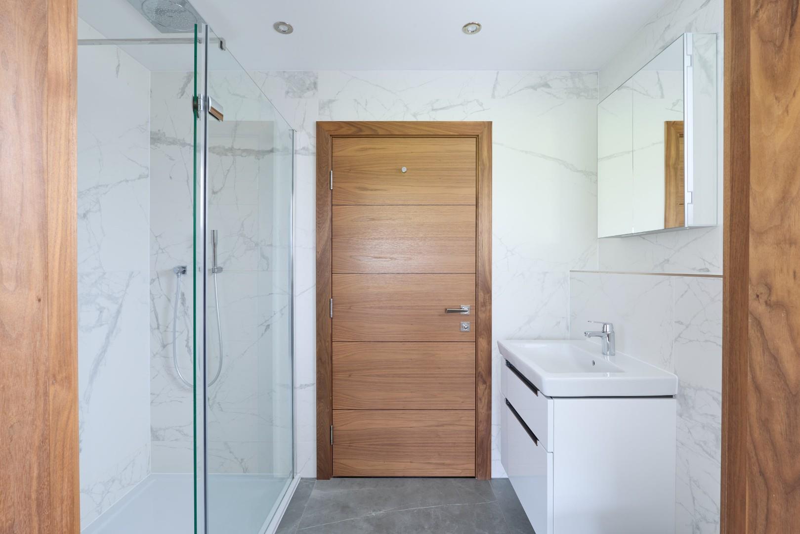 • Bespoke American black walnut timber solid core flush internal doors, linings and architraves.