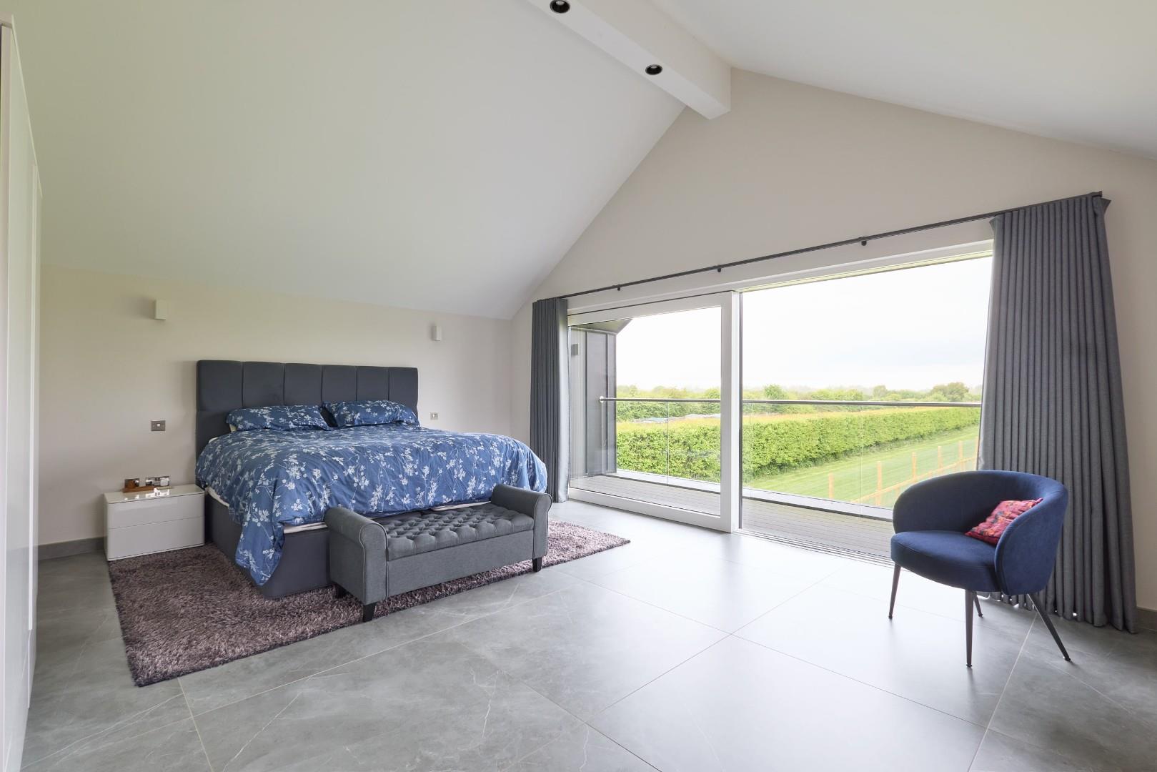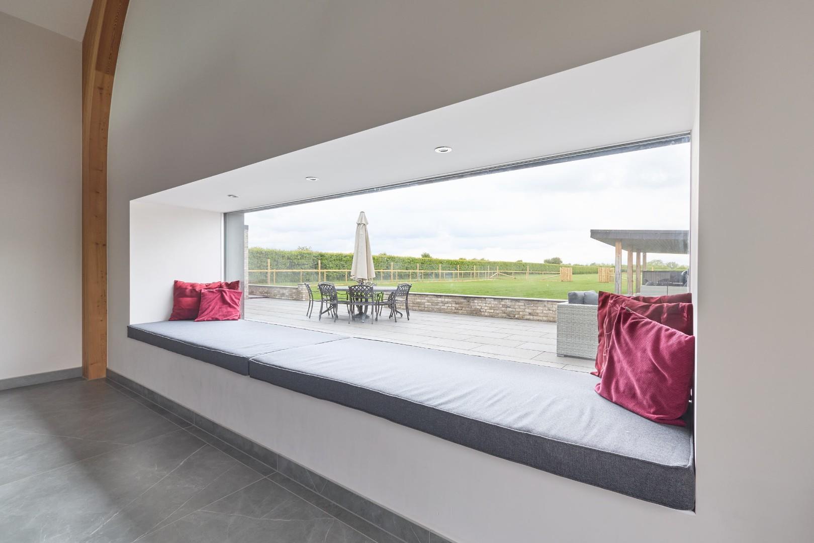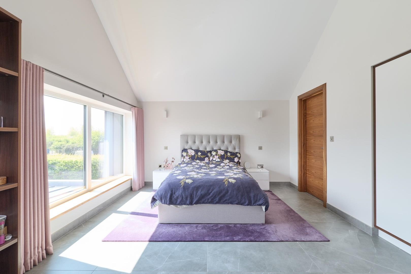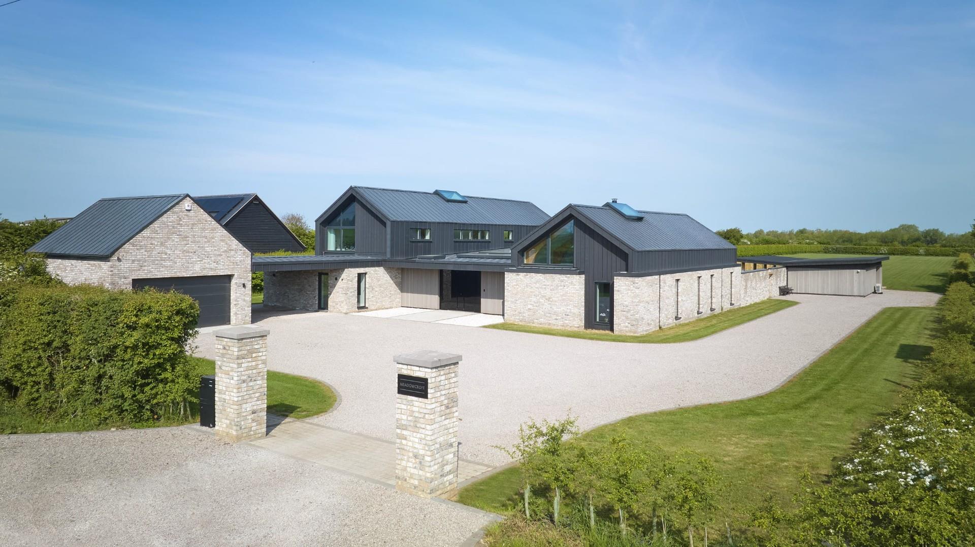 A stunning and beautifully presented contemporary village home, built to a high specification by the current owners, providing spacious and versatile accommodation on two floors. The property enjoys a rural setting on the edge of the village and backing onto farmland with an RSPB Nature Reserve and lakes beyond. The property is located on a no-through road and set back with a large gravel driveway. The bespoke front door leads to the generous reception hall with a feature Italian Marble wall and a large glass roof light over. The bright and spacious hall leads through to the impressive 29'9" x 25'11" open plan kitchen/dining/family room, which is a true centre to the home, with a 25' wide full height sliding glazed wall opening to the rear terrace and gardens beyond, creating an amazing entertaining space. The kitchen is fitted with high quality German Ballerina handleless units, integrated appliances and Granite/Corian worksurfaces and splashback. There is also a 19'7" x 12'1" utility room/second kitchen. Doors lead from the open plan entertaining space to the separate living room, with contemporary double-sided 'Stuv' wood burning stove and a feature box window seat. There is a further TV room with fully automated Dolby Atmos wiring; a separate study/home office and a first floor mezzanine/snug with glazed walls and gallery.