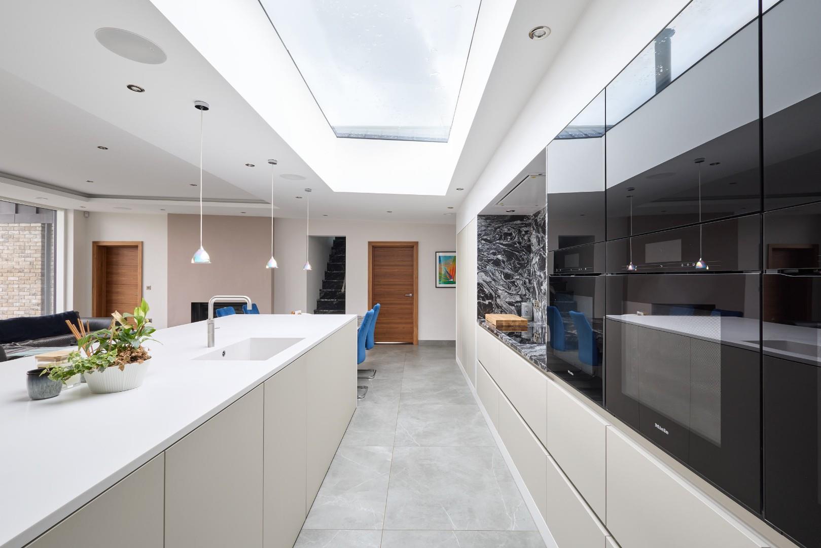 • Contemporary double-sided Stuv wood burning fire to kitchen living room.