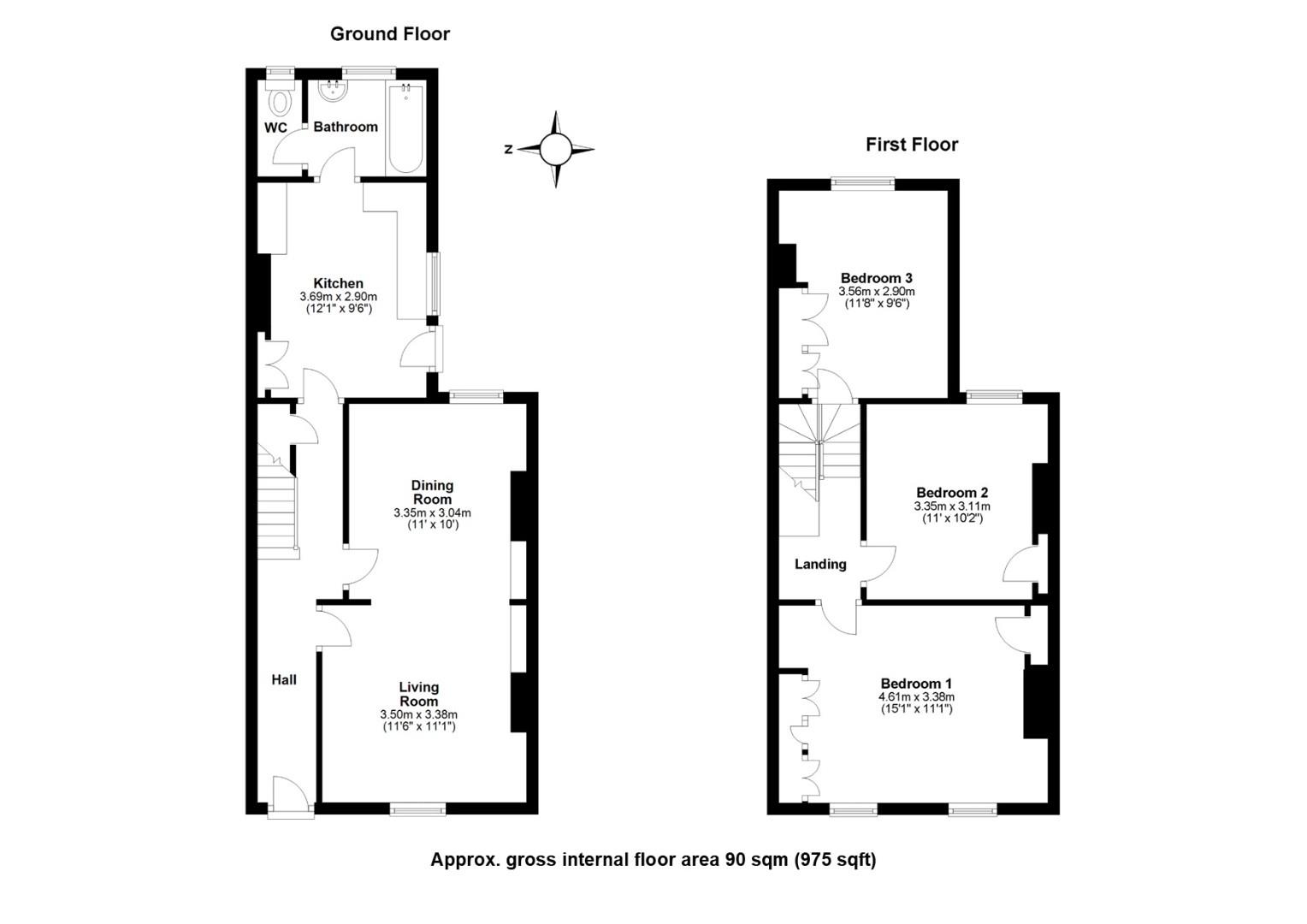 Upstairs are three bedrooms, two are comfortable doubles and the third, a nicely proportioned single. Built-in cupboards / storage can be found within bedrooms 1 and 3. The landing provides access to an insulated loft.