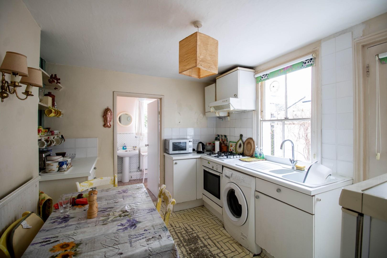 The property is entered via a solid timber door with a fanlight over, leading to an entrance hall with stairs to first-floor, understairs storage, and retains a decorative archway and corbels. There is an open-plan living / dining room, benefitting from a dual aspect, built-in shelving and storage. The kitchen has been fitted with a basic range of units and has a side door to the garden; integrated appliances include an oven and four-ring gas hob with an extractor over. We understand the freestanding fridge and washing machine can be included in the sale if necessary. Completing the ground floor accommodation is a bathroom with door to a separate W.C.