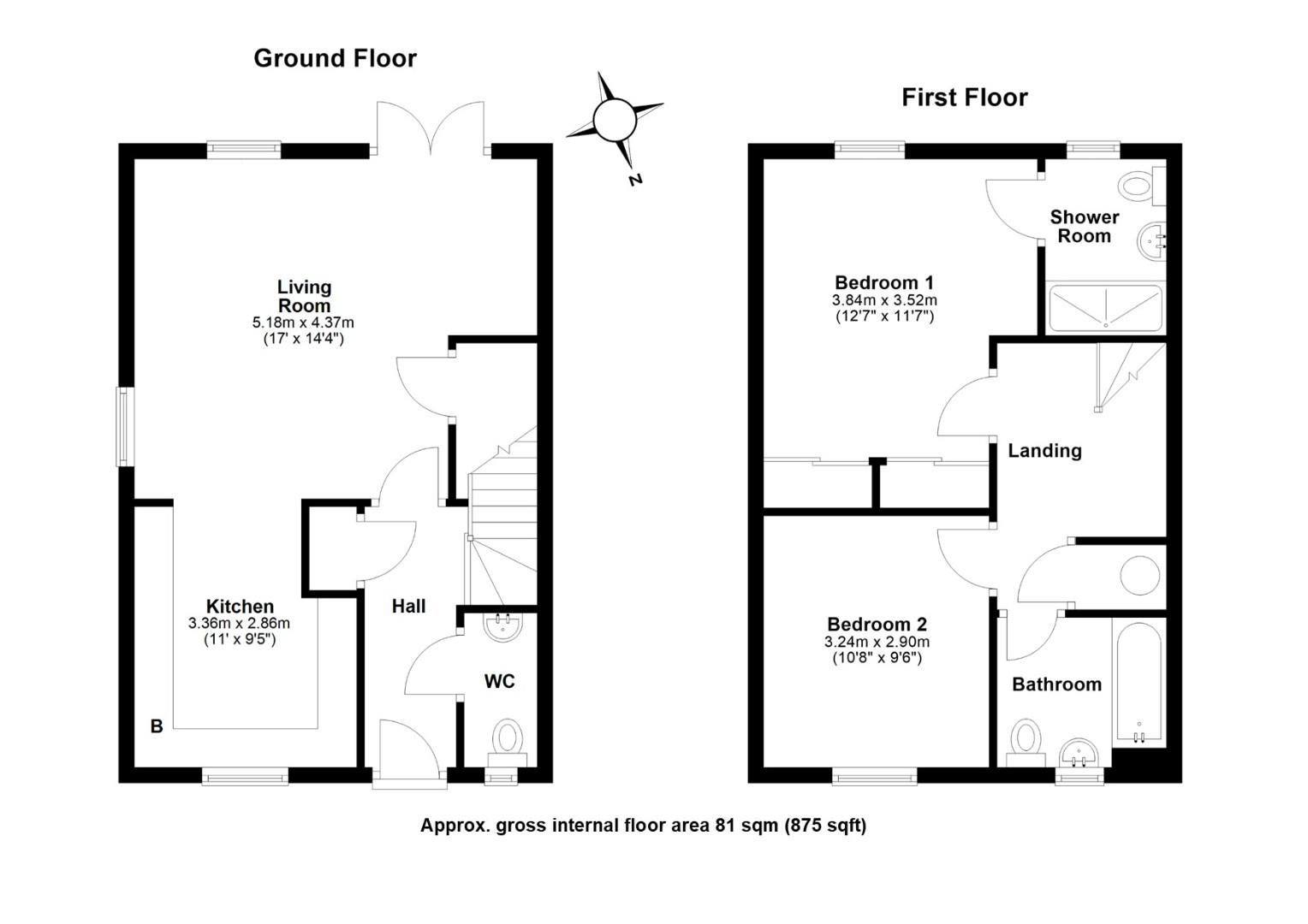 Upstairs, off the half galleried landing is an airing cupboard and roof space access, two bedrooms including the master bedroom with mirror fronted wardrobe cupboards and an ensuite shower room, comprising close-coupled WC, vanity wash hand basin, tiled shower cubicle and attractive ceramic tiling. Bedroom two is serviced by the family bathroom, which comprises a low level WC, wall mounted wash hand basin, panelled bath and attractive wall and floor tiles.