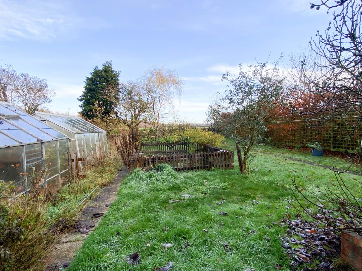 Outside there is an expansive lawn to the front with mature trees and shrubs plus a long driveway accommodating several vehicles and leading to the garage with double doors, power and light connected. Gated side access leads to the rear garden which is laid mainly to lawn with flower and shrub borders and beds, a vegetable/herb garden, wildlife pond, mature specimen and fruit bearing trees , two greenhouses, a shed and all overlooking farmland to the rear.