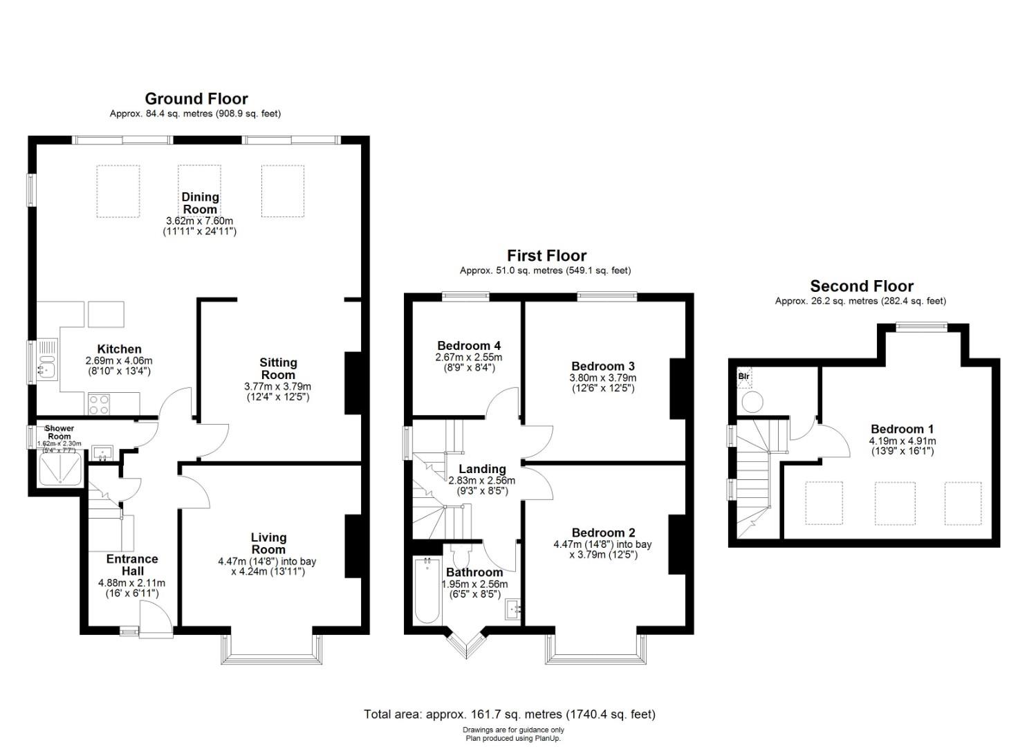 The ground floor features a large living room, a separate sitting room and a spacious open plan kitchen and dining area, making the space ideal for both everyday use and entertaining. The first floor provides three well proportioned bedrooms and the family bathroom, with a further bedroom on the top floor.
