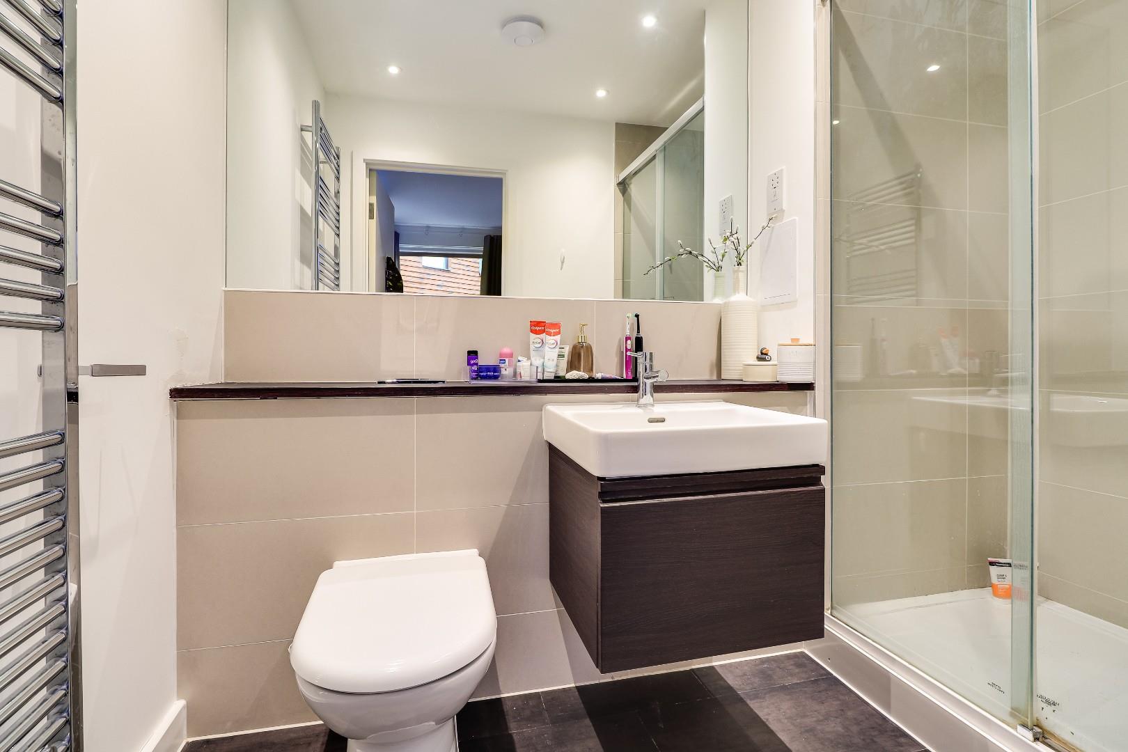 There are two good-sized double bedrooms, bedroom 1 benefitting from built-in wardrobes and a luxury ensuite. The contemporary family bathroom is fitted with a sleek three-piece white suite, including a shower over the bath and a heated towel rail.