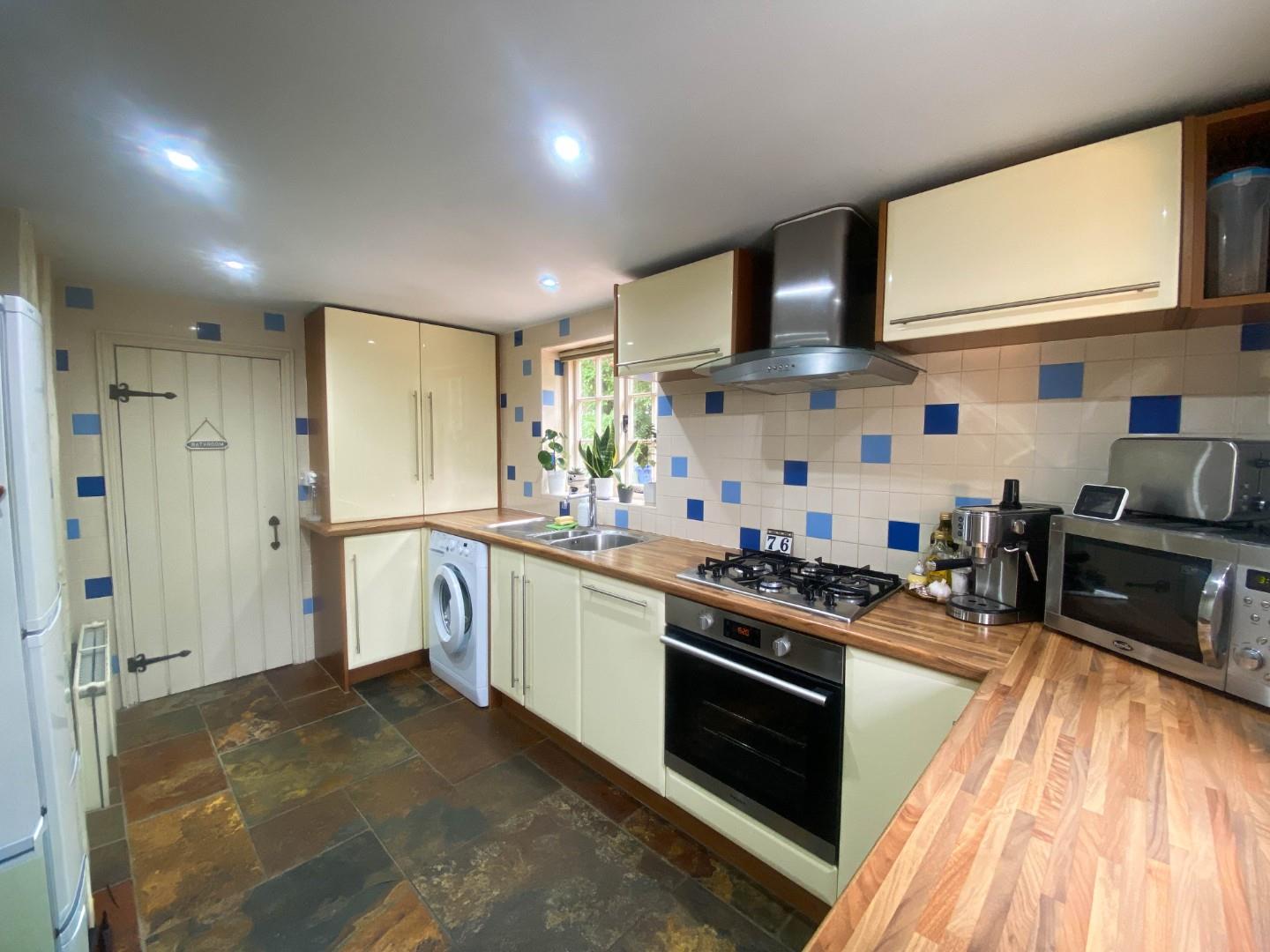 The accommodation comprises an entrance hall which in the past has been utilised as a study area, opening to the sitting room with exposed timber beams, a feature fireplace with inset gas fired stove. The kitchen has been fitted with attractive cabinetry, ample fitted working surfaces with inset one and a half sink unit with mixer tap and drainer, four ring gas hob, oven, extractor, integrated dishwasher plus space for a fridge/freezer and a washing machine. All complimented by a beautiful slate floor. The ground floor bedroom has French doors out to the garden and in the past has been utilised as a further reception room. The bathroom has been re-fitted with designer Duravit sanitary ware which include a low level WC, vanity wash hand basin, panel bath tub with mains-fed shower over and attractive slate flooring.