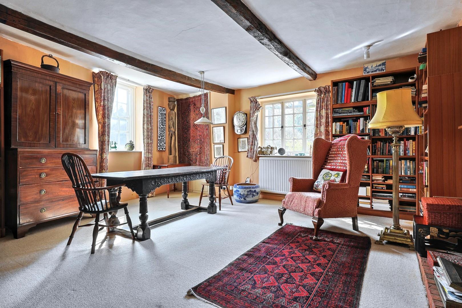 There are six generous reception rooms, all with unique features including fireplaces and exposed timbers. The drawing room is particularly worthy of note, a wonderful room with beautiful inglenook fireplace, exposed timber beams, brick work, wood panelling and solid oak flooring. From an inner hallway, there is another cloakroom/WC and a door to the cellar which has excellent head height.