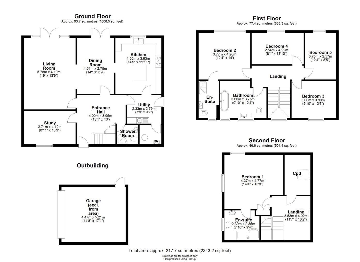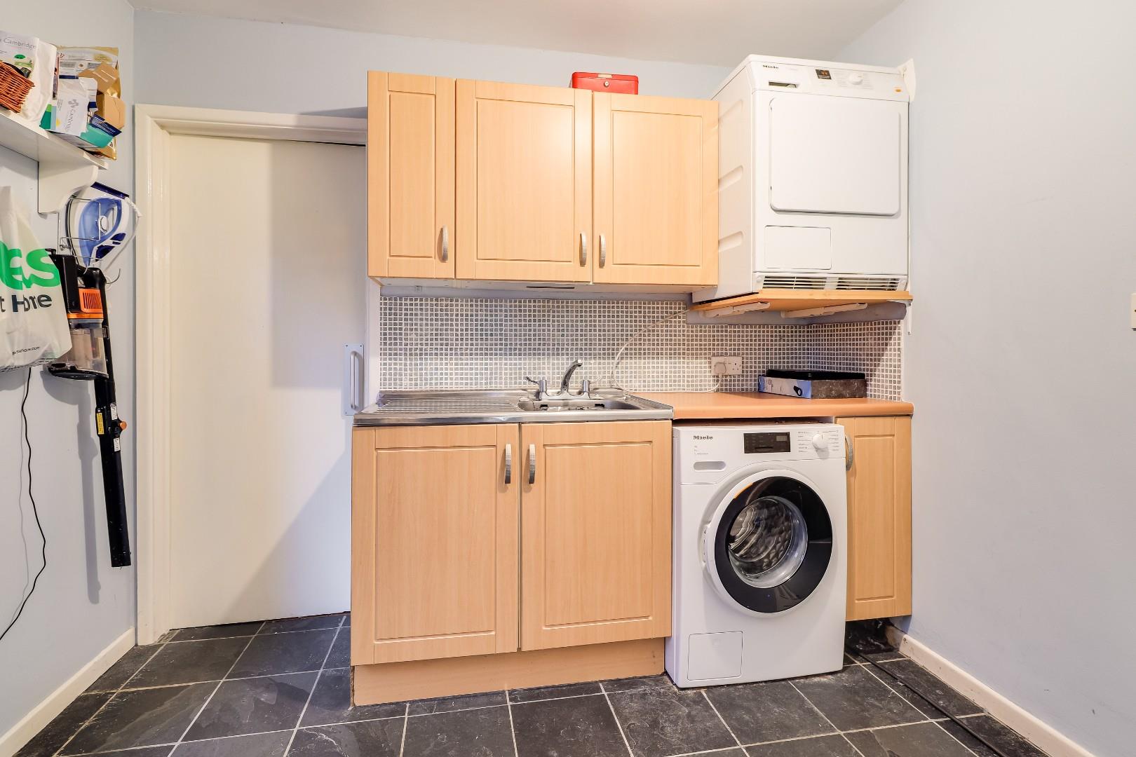 The ground floor accommodation includes a welcoming entrance hall with stairs to the first floor, access to a three-piece shower room and study/playroom. Both the dining room and living room have French doors providing views of and access to the rear garden, with the latter including a dual aspect and a wood-burning stove. The well-appointed kitchen has a feature wall with exposed brick, a tiled floor, a range of fitted units, a central island, space for a range cooker with an extractor hood over, space for fridge/freezer and plumbing for a dishwasher. The utility room also has fitted units and a further sink, plumbing for a washing machine, space for a dryer and access to the boiler room.