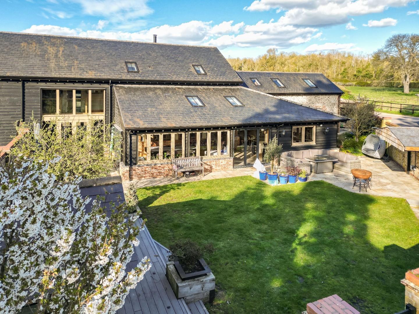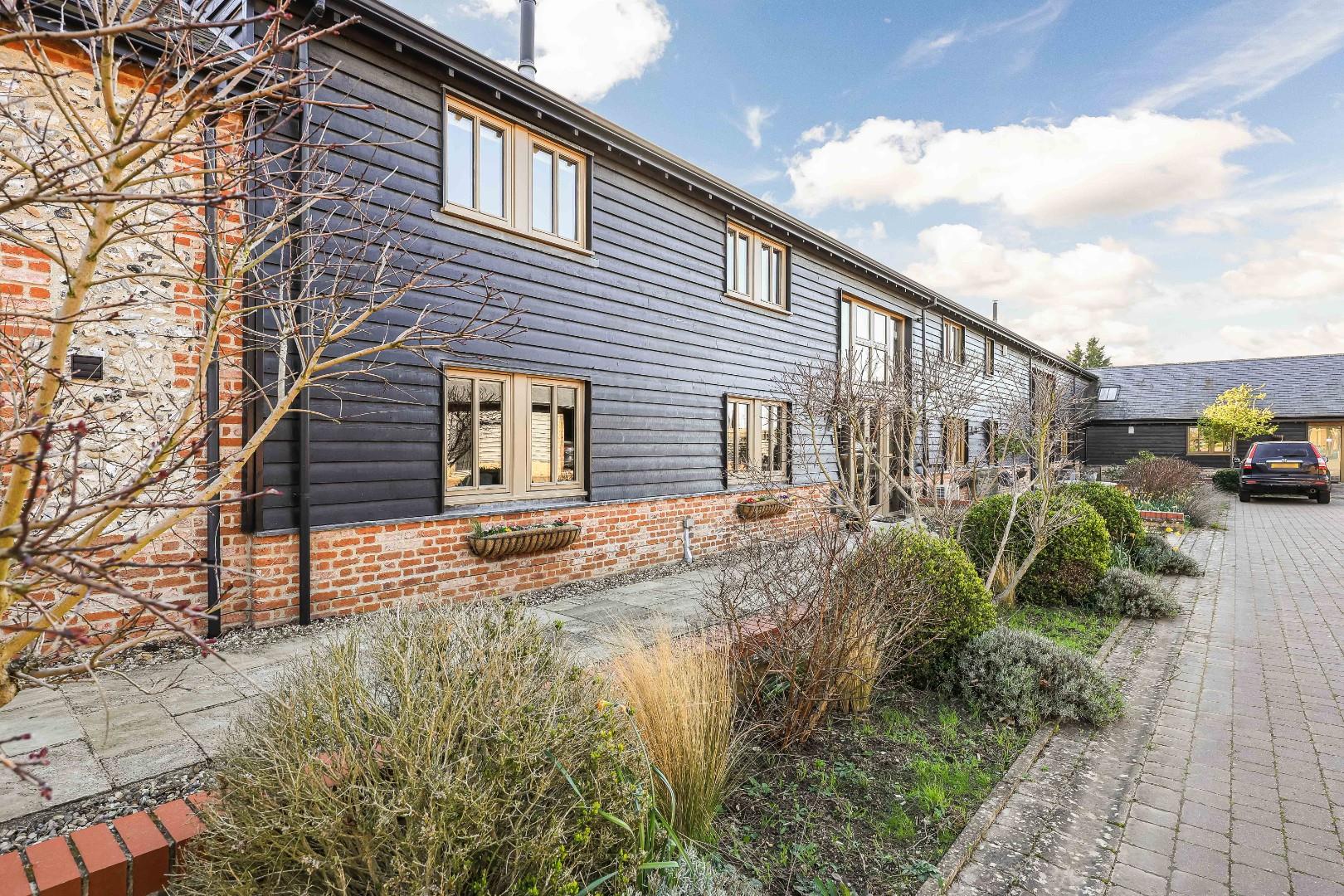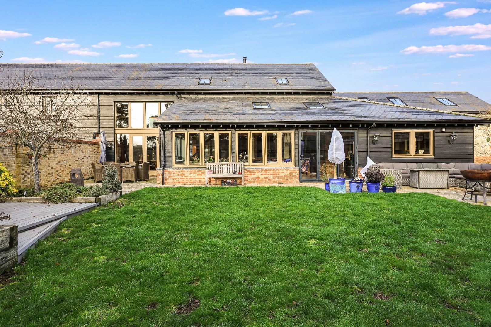 Number 1 Ley Rectory Farm Barn was converted in 2009-2010 by a highly reputable developer. The property being the centerpiece of a small, select scheme of just two other luxury dwellings. The property is discretely positioned, approached via a private driveway behind electric timber gates which open to an expansive parking area together with double garage, outbuildings and a luxury one-bedroom self contained apartment/annexe which is ideal for an au pair or indeed dependent relative.