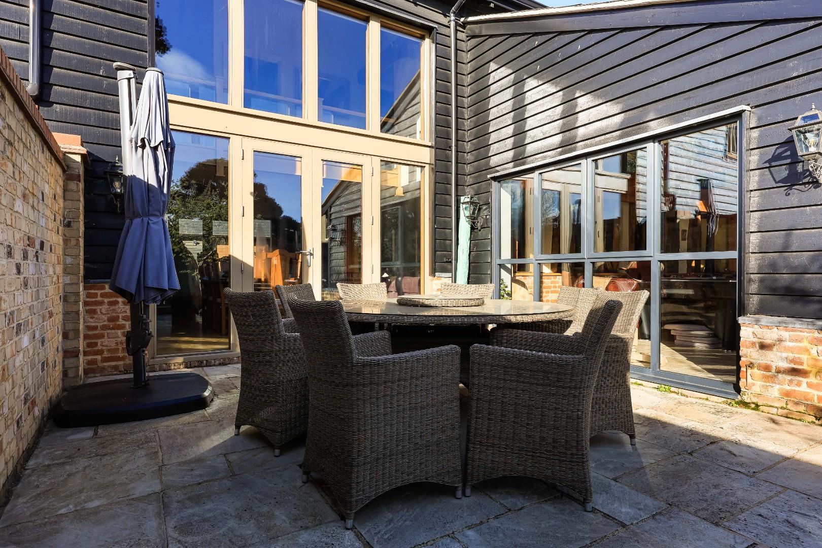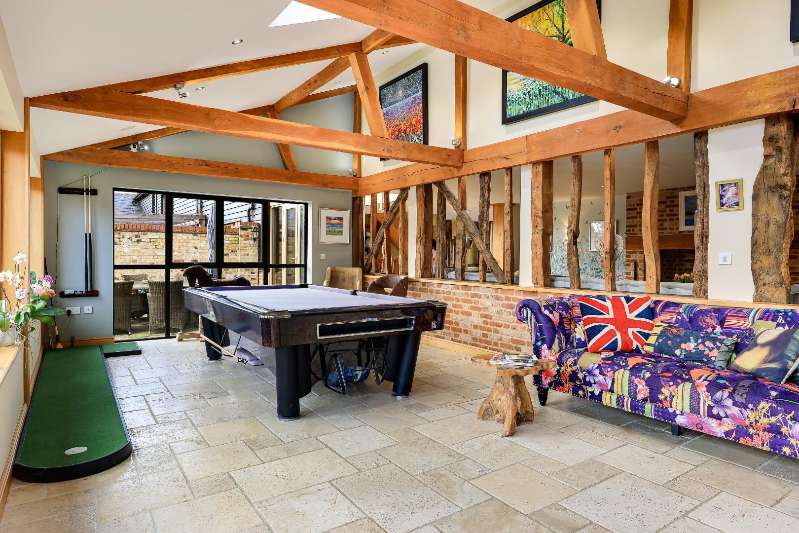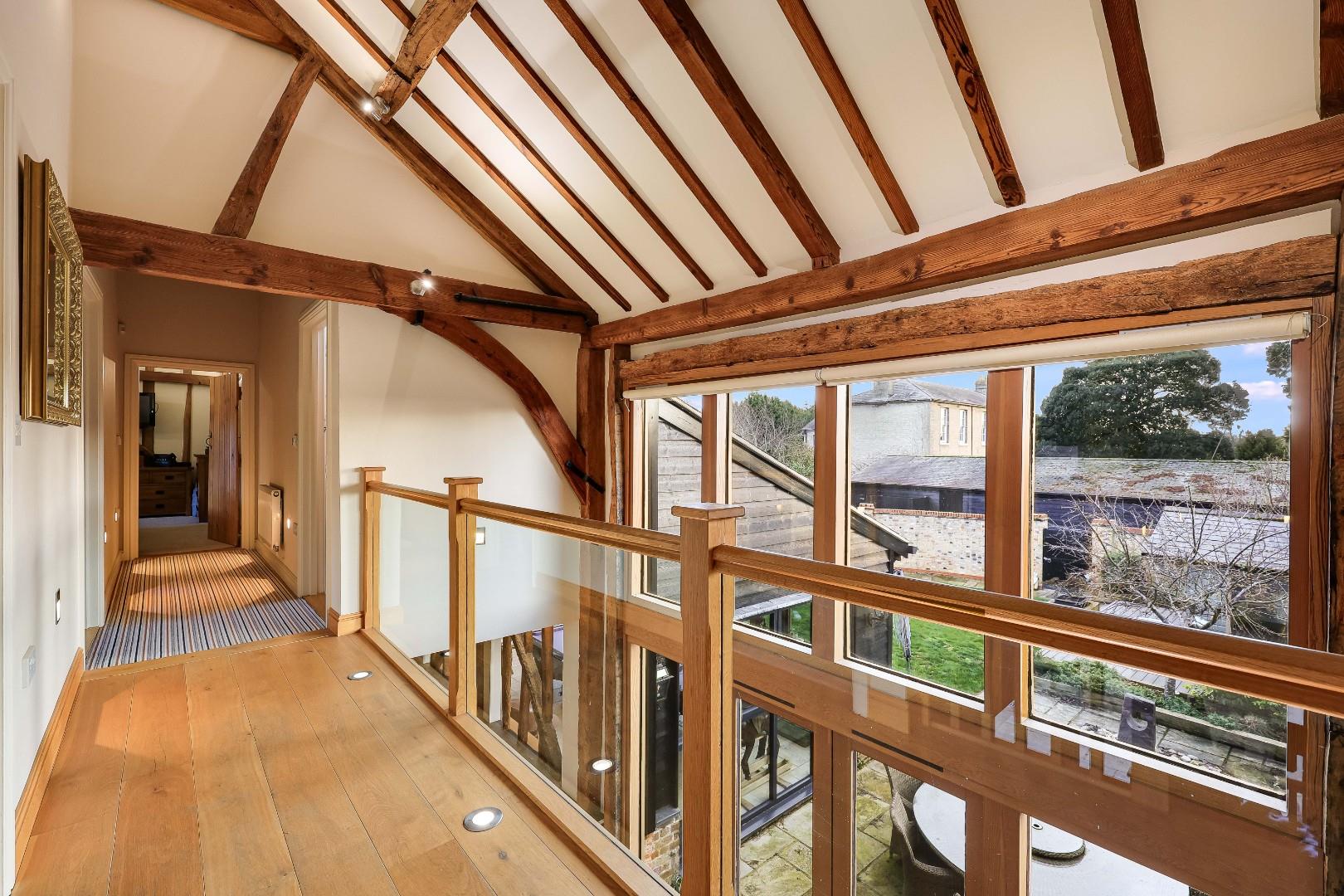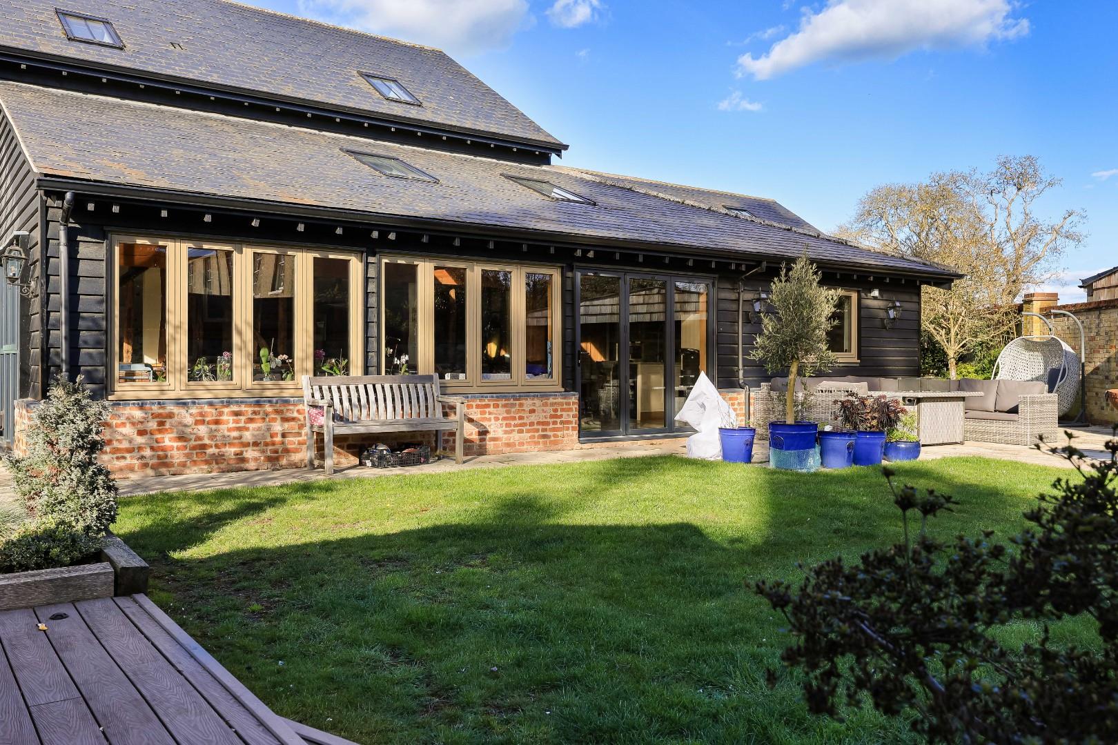Number 1 Ley Rectory Farm Barn was converted in 2009-2010 by a highly reputable developer. The property being the centerpiece of a small, select scheme of just two other luxury dwellings. The property is discretely positioned, approached via a private driveway behind electric timber gates which open to an expansive parking area together with double garage, outbuildings and a luxury one-bedroom self contained apartment/annexe which is ideal for an au pair or indeed dependent relative.
