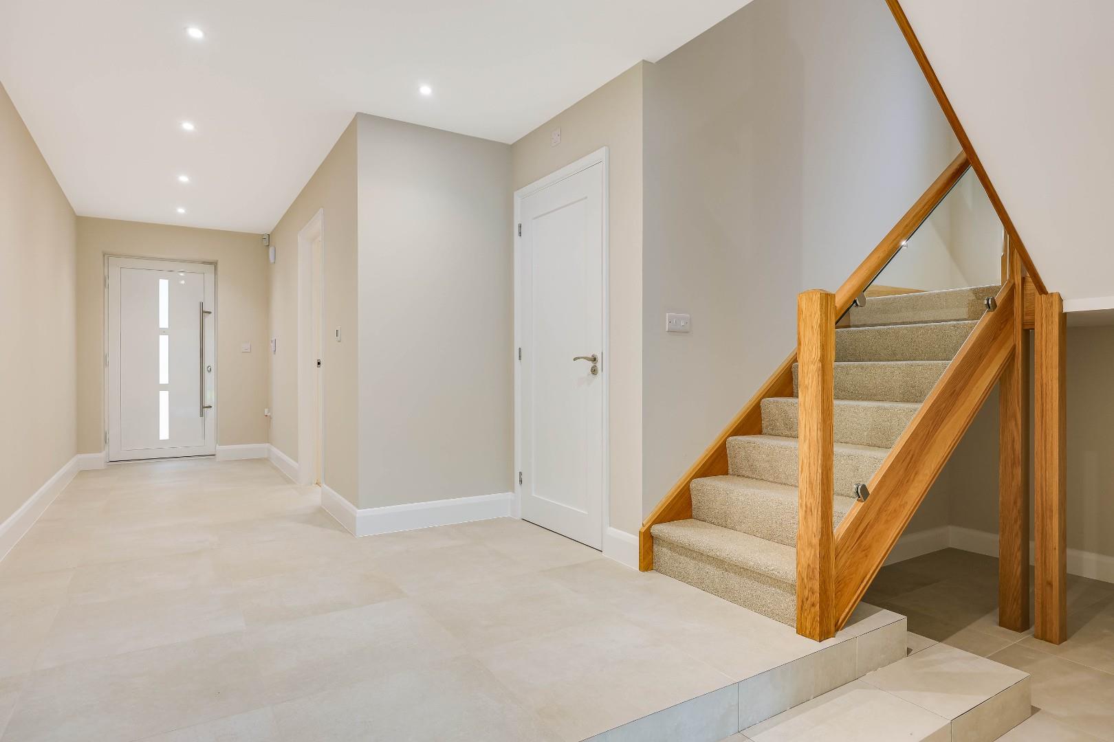 The stunning detached home offers generous living accommodation, set over three floors and comprises a spacious entrance hall with feature full-height vaulting to the skylight in the roof, and bespoke oak stairs with glass balustrade leading to the first and second floors.