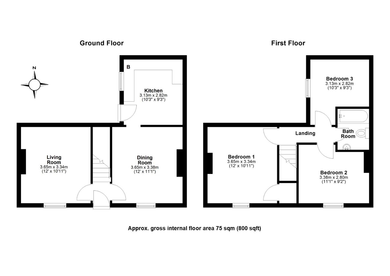 The first floor is made up of three good-sized bedroom and a family bathroom, fitted with a three-piece white suite.