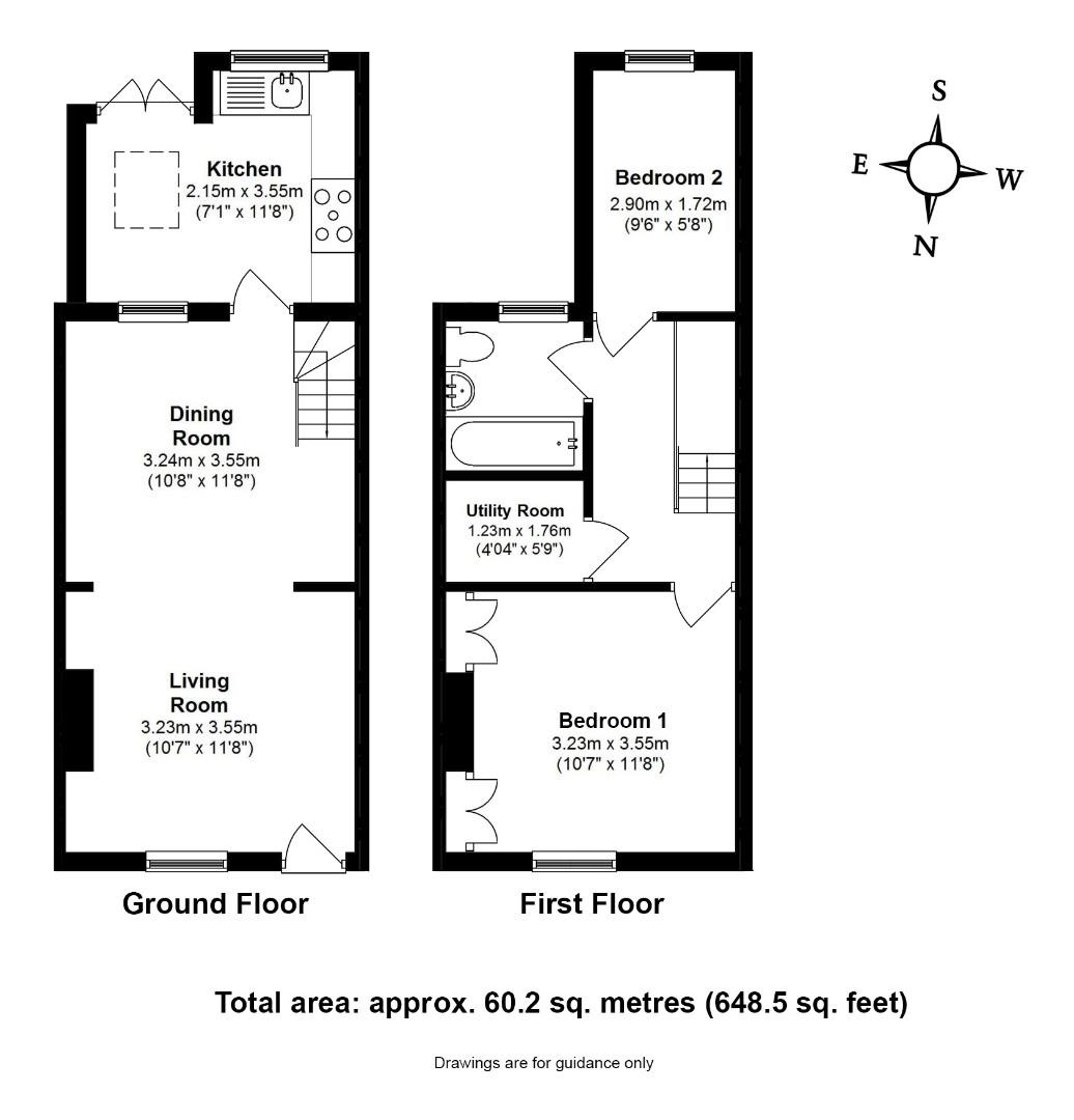 On the first floor, there are two bedrooms, with the master including a charming cast iron fireplace and fitted wardrobes. Stylishly refitted, the family bathroom has natural slate floor tiles and a 3-pc suite including, panelled bath with mains shower over, combined wash basin and WC unit and a heated towel rail. Conveniently situated off the landing, the utility room has fitted shelving, plumbing for a washing machine, space for tumble dryer and recently installed Worcester Greenstar combination boiler.