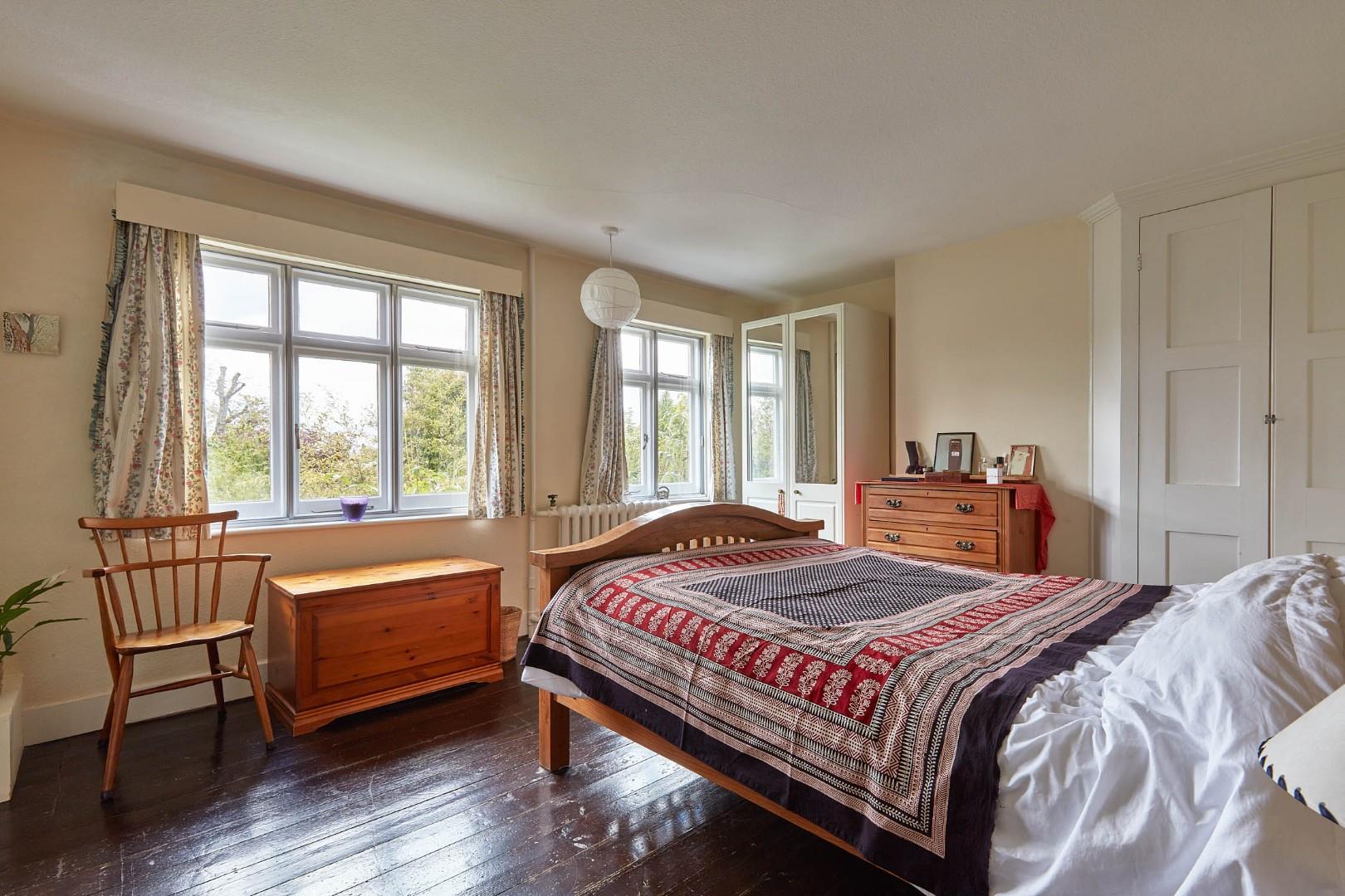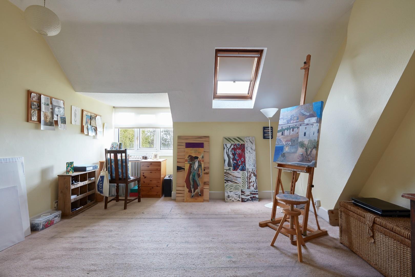 The property sits in impressive grounds and is well-screened from the road, providing extensive off-road parking and mature gardens with a separate home studio/workshop.