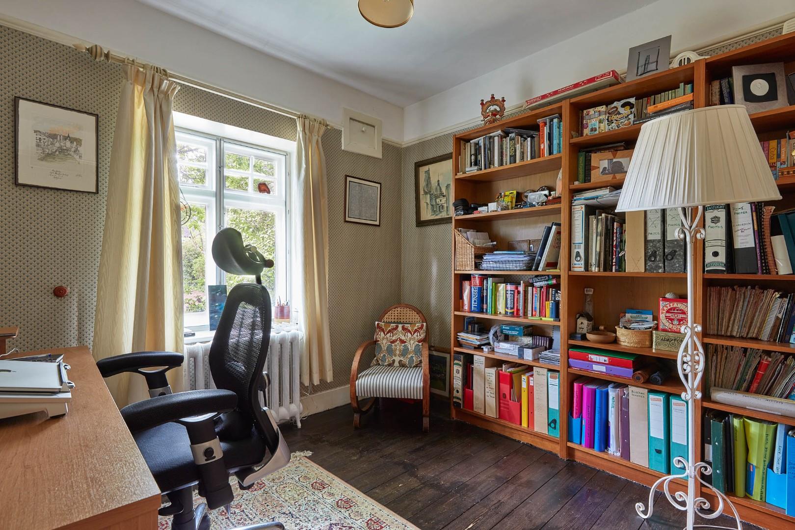 Charming and characterful accommodation measuring an impressive 2153 sqft is well arranged and provides good flexibility and scope for remodelling and expansion, if required. The central and welcoming entrance hall with feature staircase and a WC. opens to all principal reception rooms. Two elegant reception rooms interlink and enjoy views to front and rear gardens. The sitting room has an attractive period fireplace and French doors opening to a terrace area. The living room has a beautiful bay window. Original restored wooden floors enhance both rooms. A formal dining room enjoys views down the garden and connects to a well-equipped kitchen. A study completes the ground floor accommodation.
