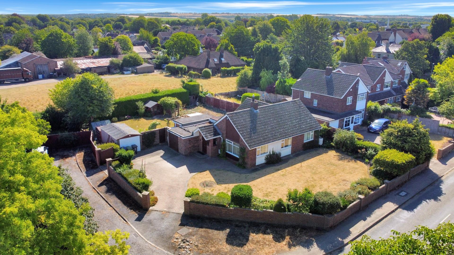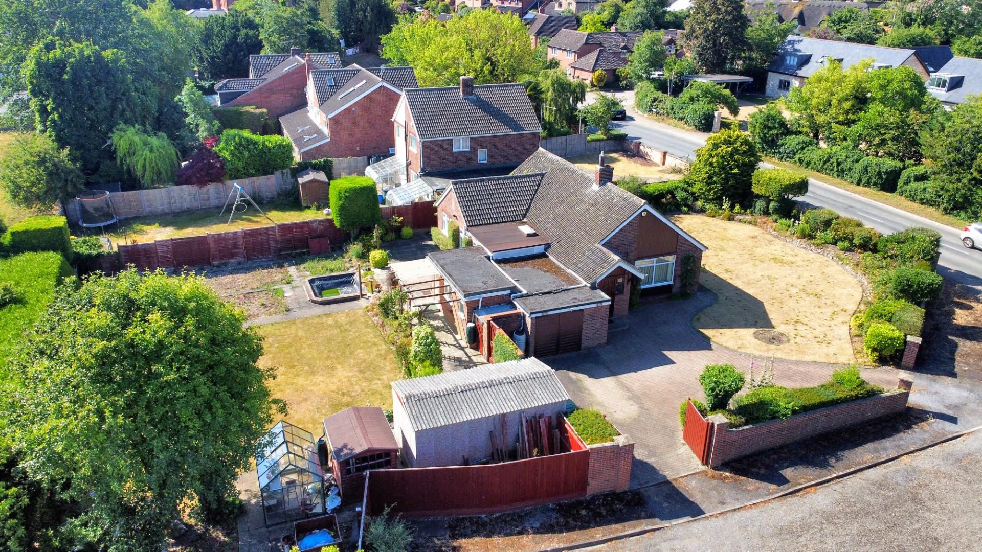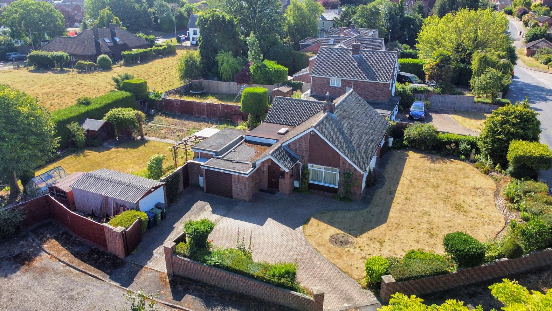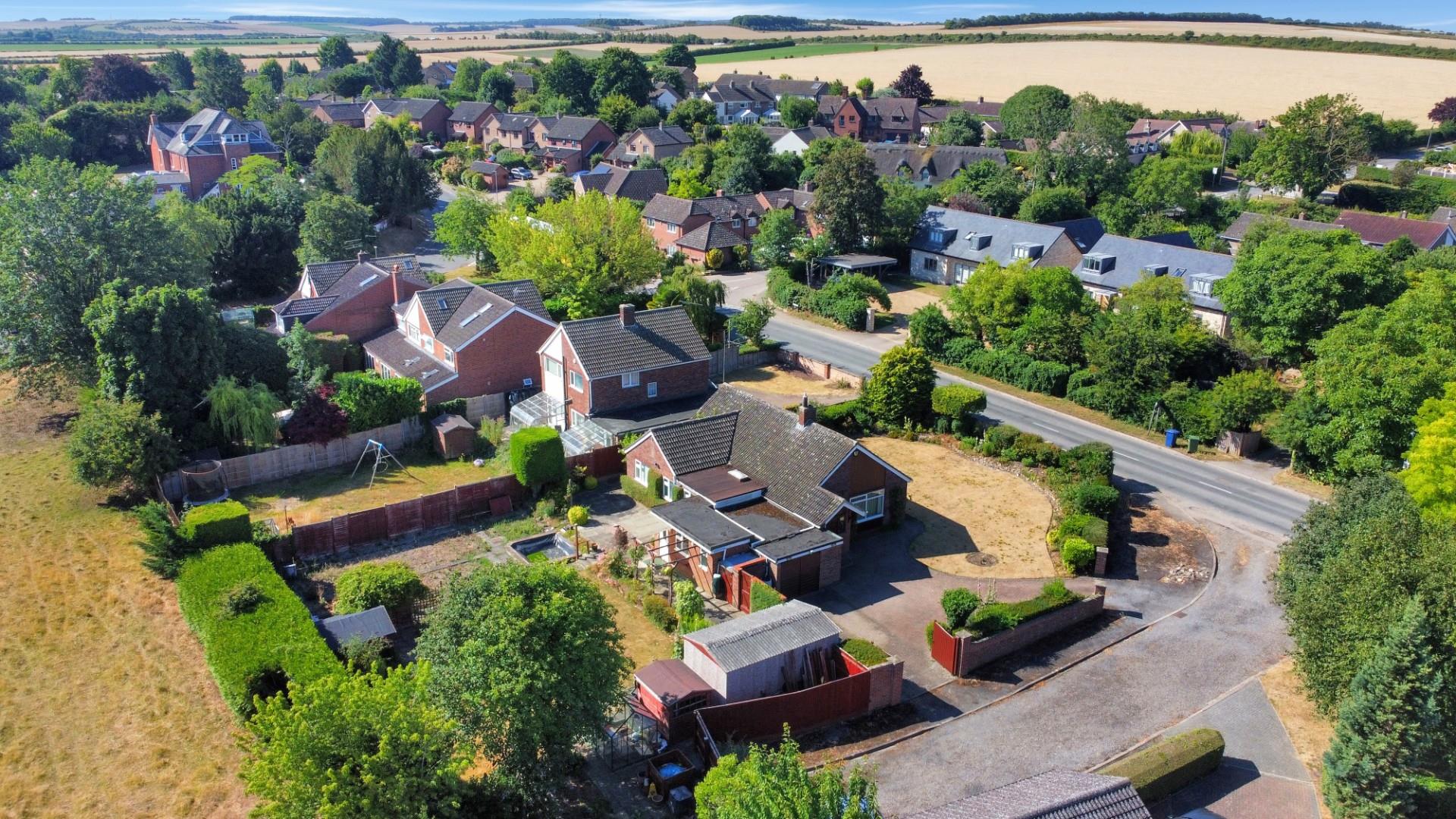 The property enjoys a fine no-estate position, set back from the road and just a short walk from the primary school , village amenities and parish church. The property is nestled in mature and private gardens and grounds extending to 0.25 acres which includes a generous driveway and two garages. Given the the property's position within the plot, with garden on all sides, there is great potential for further expansion and the generous loft space could also easily be converted, subject to planning consents. The accommodation comprises a welcoming reception hall with fitted coat cupboard, leading to a dual aspect sitting room with open fireplace, which in turn opens to the dining room. The kitchen/breakfast room is a generously proportioned space with sky light and windows overlooking the garden and fitted with a range of base level and wall mounted storage cupboards, ample fitted working surfaces with inset one and a half sink unit with mixer tap and drainer, a four ring ceramic hob, double oven, extractor and space for a fridge/freezer. There is also a door to the integral garage and to the utility room which has space for the usual white goods, door to garden and a cloakroom/WC just off.