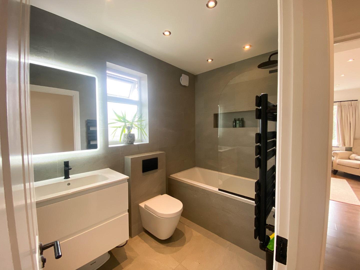 Upstairs, off the landing are three good sized bedrooms and a luxury family bathroom consisting a closed coupled WC, vanity wash hand basin, panel bath with mains fed drencher shower over, heated towel rail and attractive porcelain wall and floor tiles.