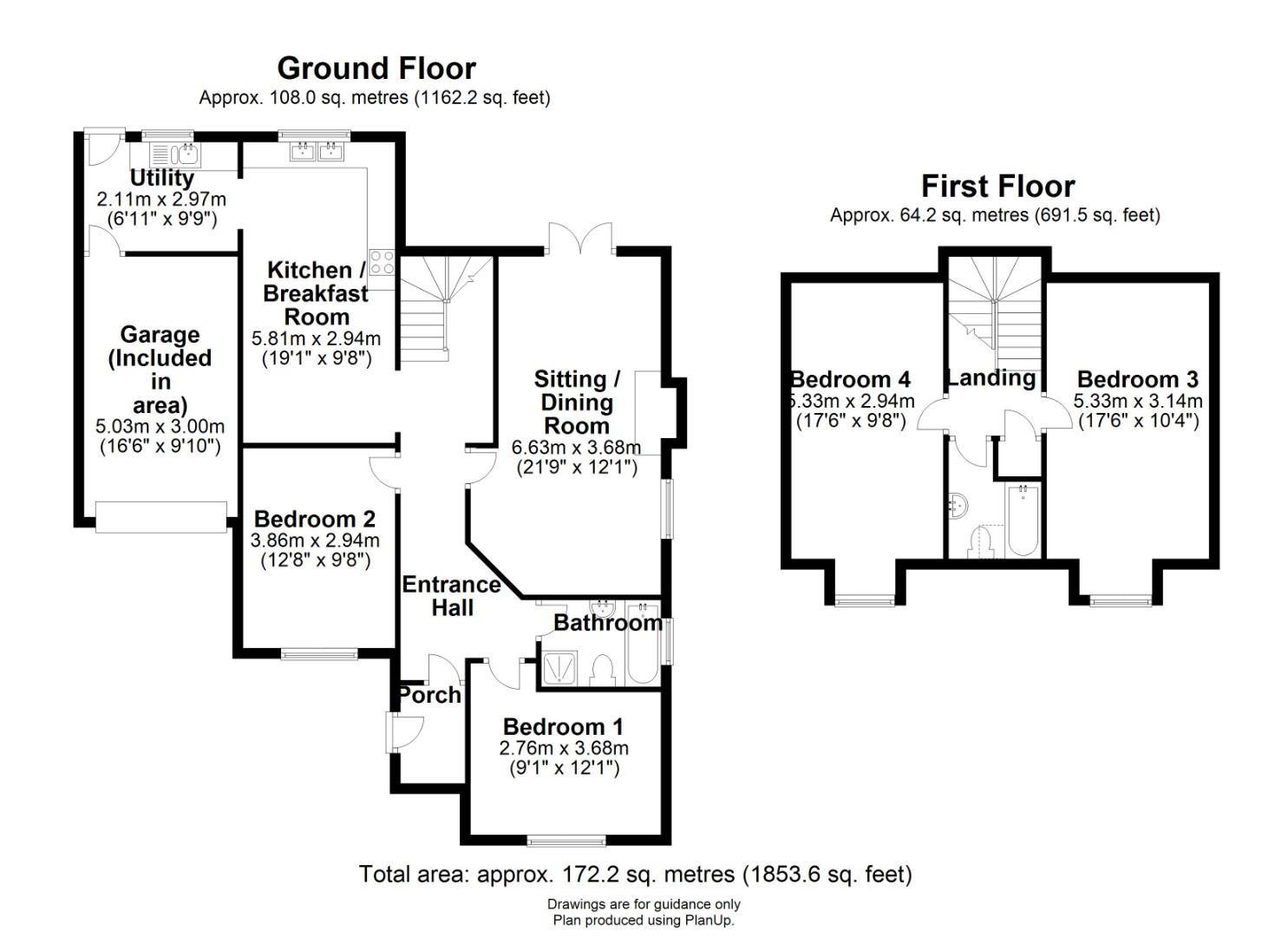 The ground floor accommodation, which has hardwood flooring, comprises of a porch and entrance hall, sitting/dining room with feature fire place and sliding doors leading to the garden, and a kitchen/breakfast room. The kitchen is well appointed with a both base and eye level cabinetry, range cooker with gas hob, inset ceramic sink with mixer taps, fridge/freezer and space for dishwasher. The utility room offers further cabinetry, stainless steel sink, space for washing machine and tumble dryer and access to garden and garage. The ground floor has two good size bedrooms and a family bathroom fitted with a four piece suite. There is underfloor heating in the porch area and the downstairs bathroom.