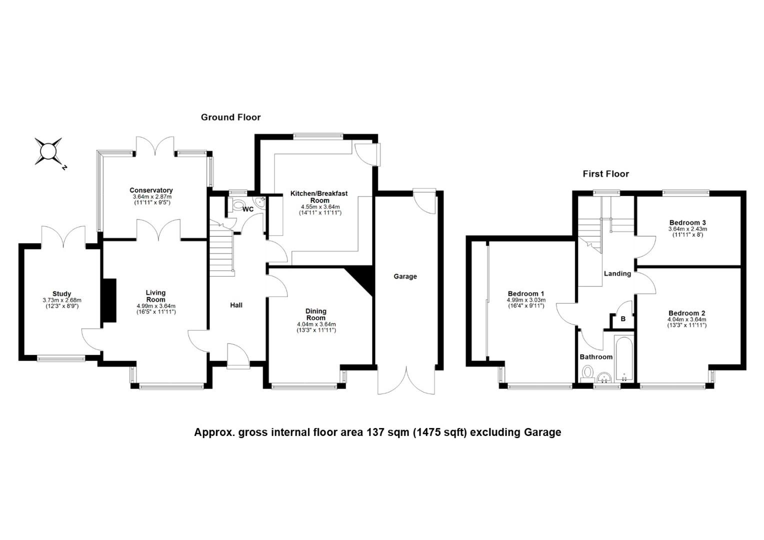 Upstairs, off the galleried landing are three double bedrooms, two of which with bay windows and family bathroom.