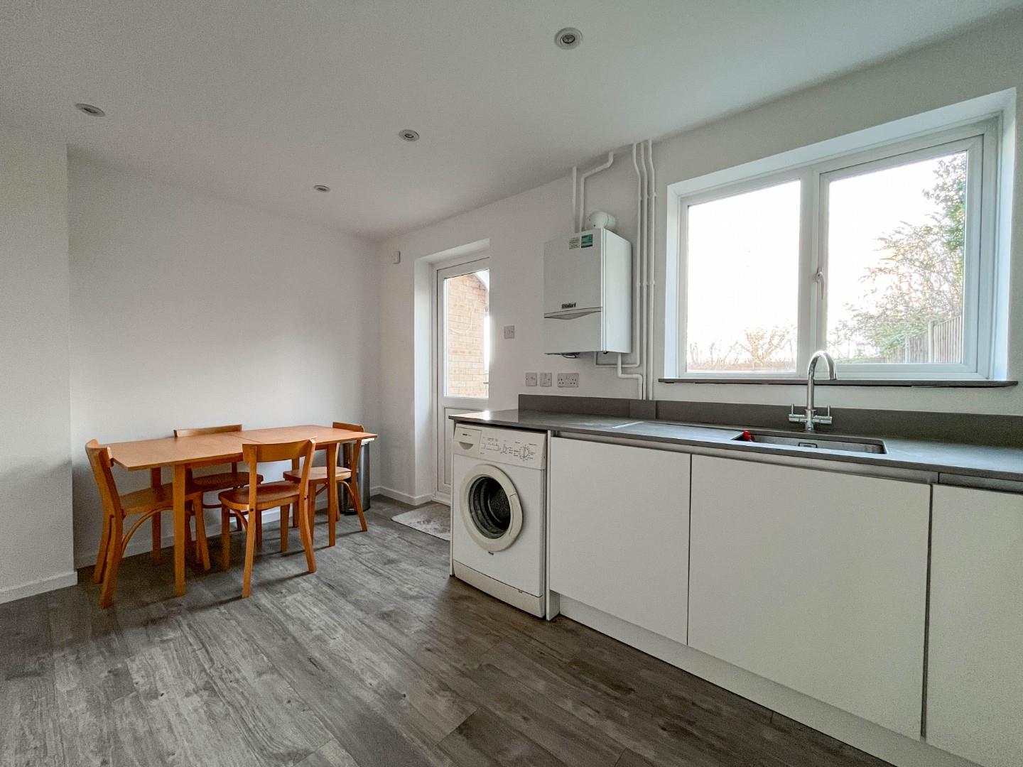 The front door opens into the living room, which has stairs to the first floor and a bay window to the front aspect. At the rear of the property is a stylishly refitted kitchen/dining room, which has wood-effect flooring and a contemporary range of fitted, white base and wall units with grey worktops and splashbacks, integrated appliances including an oven with an induction hob over, fridge/freezer, dishwasher, plumbing for a washing machine, wall-mounted boiler, large storage cupboard and a door providing access to the rear garden.