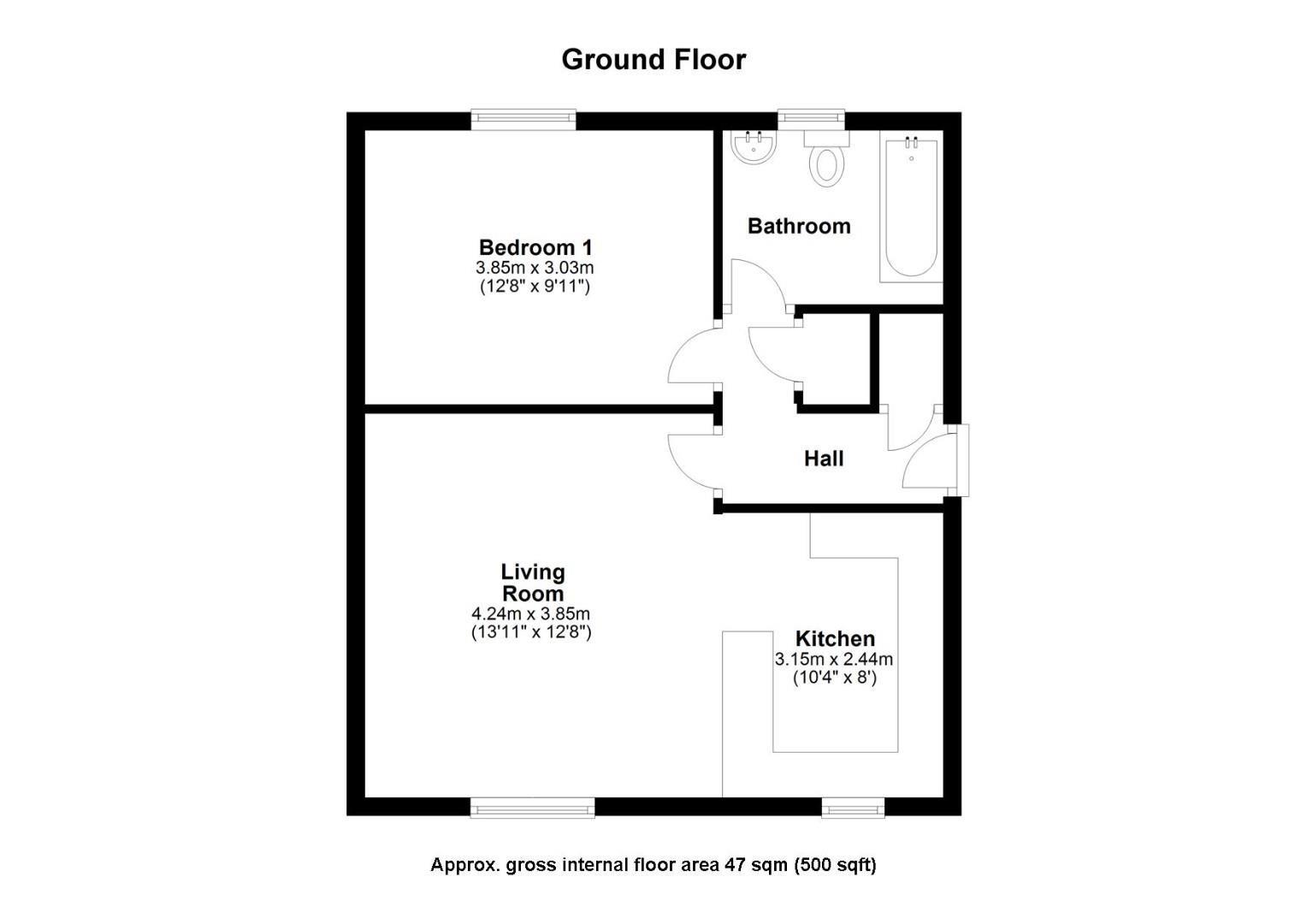 The apartment is accessed from a covered walkway and has a useful entrance hall with an airing cupboard, a light and open plan kitchen/sitting/dining room with a good range of integral appliances including a dishwasher, oven, ceramic hob and extractor fan and space for a freestanding washing machine. The bedroom is a spacious room about 12’8’’ x 9’11’’ and there is a well-fitted bathroom with a power shower over the bath. The property has a digitally controlled electric underfloor heating system and UPVC double-glazed windows throughout.