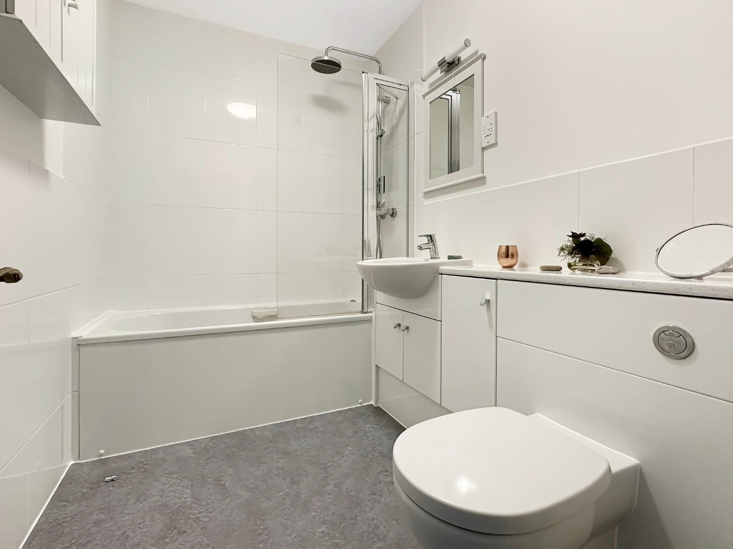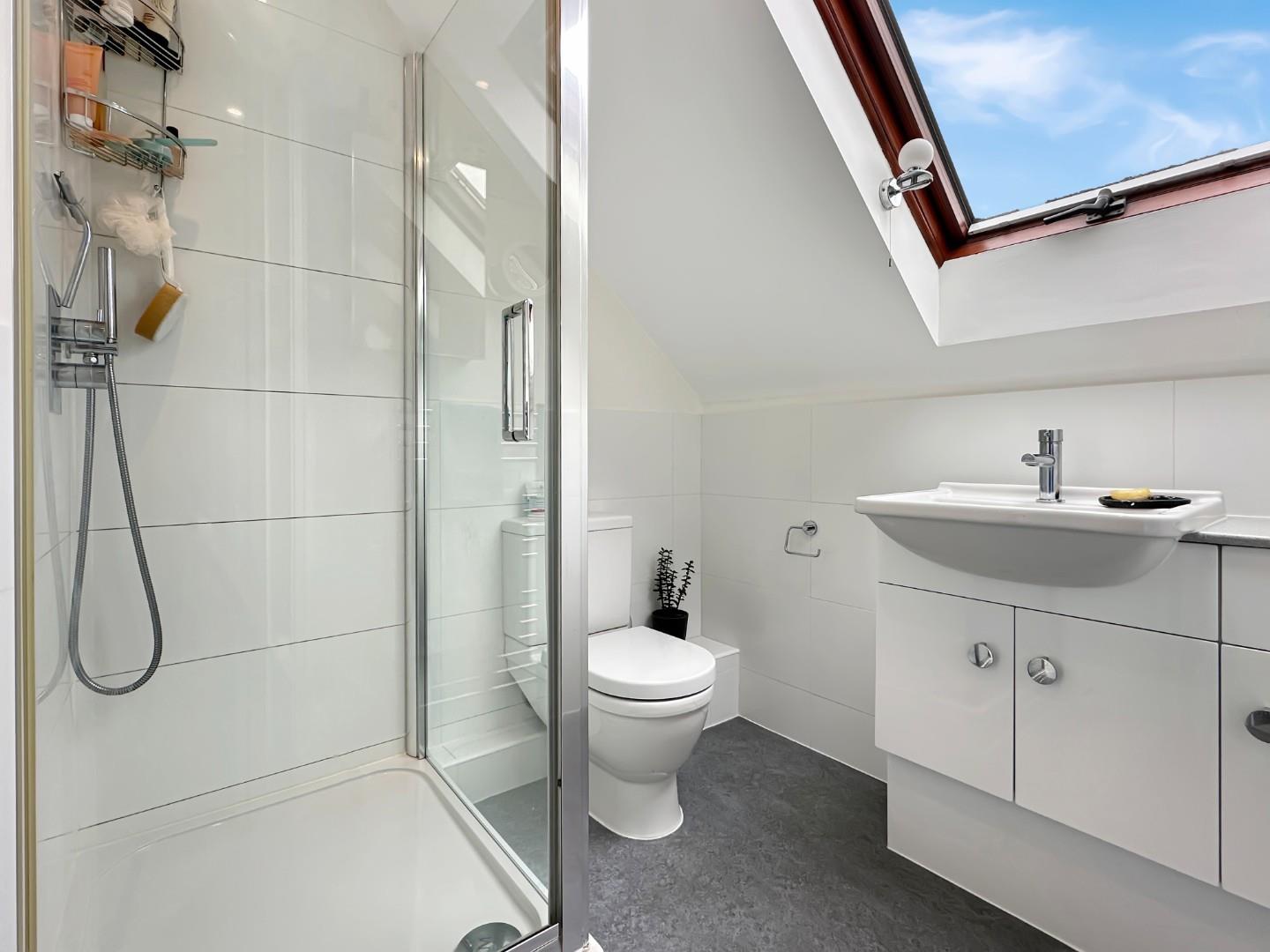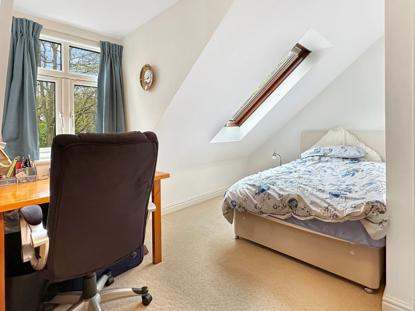 The front garden is mainly hard landscaped with an established amelanchier tree. There is a parking space, access to the garage and an externally accessed boiler cupboard. The garage has light and power and an electrically powered up-and-over door. There is plumbing for a washing machine, space for a dryer and a cold water tap next to the up and over door. The fenced east facing rear garden is about 26ft deep x 16ft wide and is paved and on two levels with mature shrub borders. There is an outside tap. The garden is very private and enjoys the benefit of the mature trees located on the land behind the house.