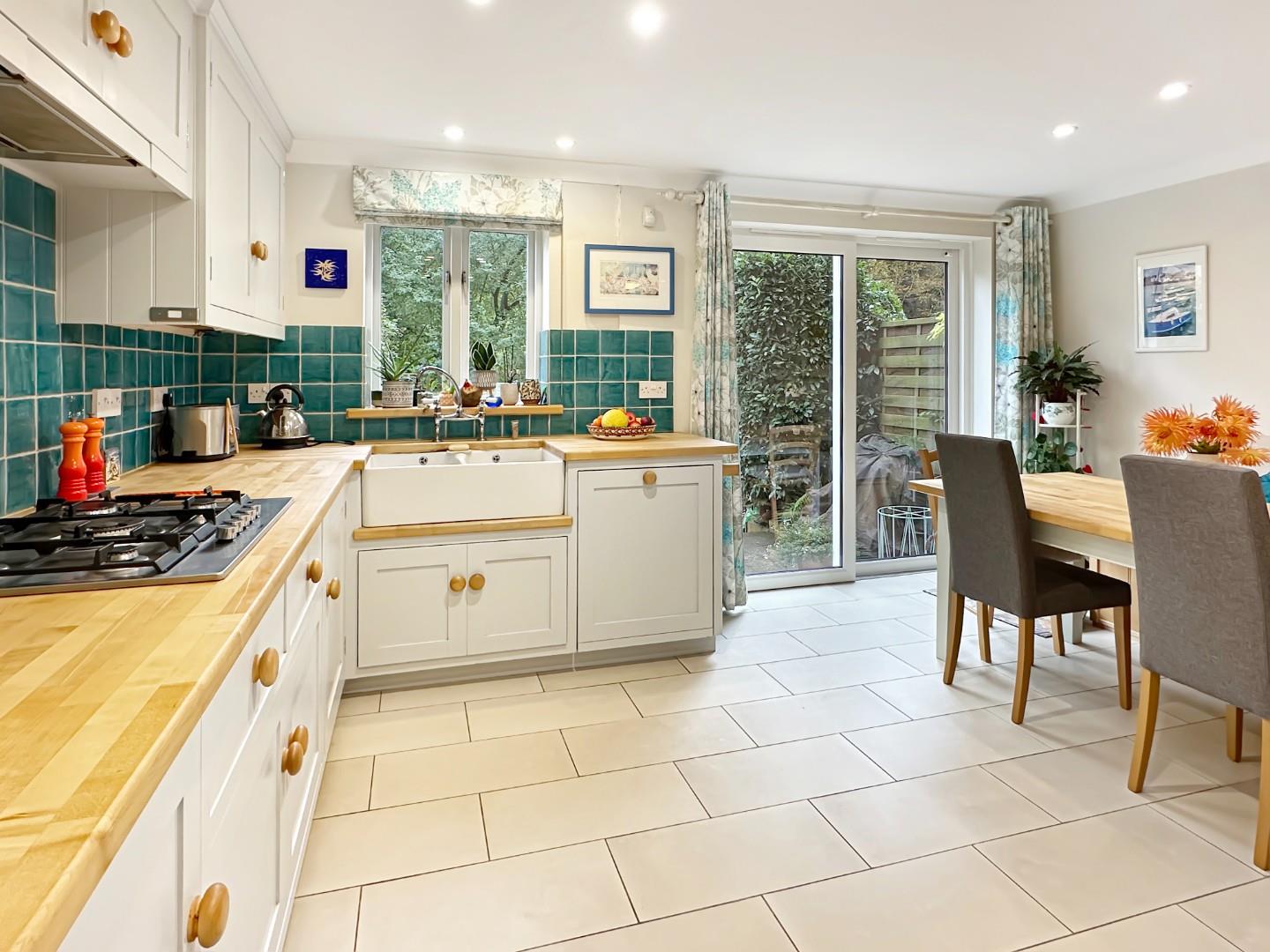 On the ground floor is an entrance hall, cloakroom and the spacious well fitted, bespoke kitchen/dining room with sliding doors to the garden. The first floor has the light and airy living room with two Juliet balconies as well as the family bathroom, two bedrooms and a large airing cupboard on the landing. The second floor has two further bedrooms, one with an ensuite shower room, and access to the loft space.