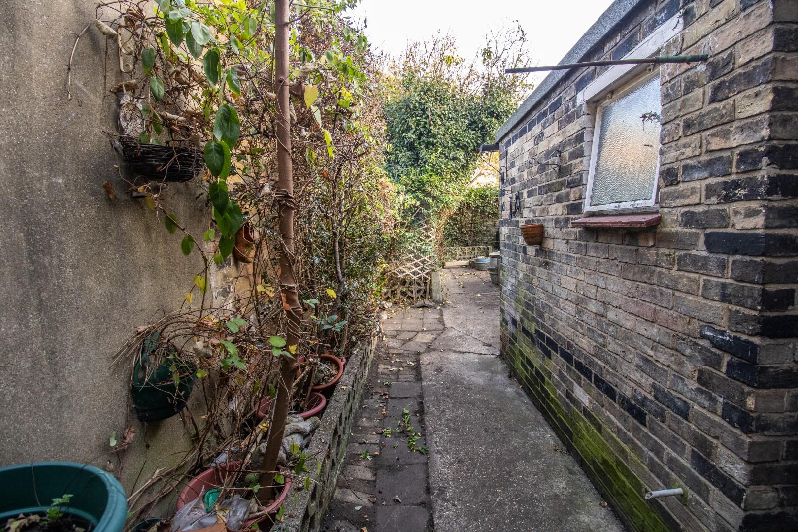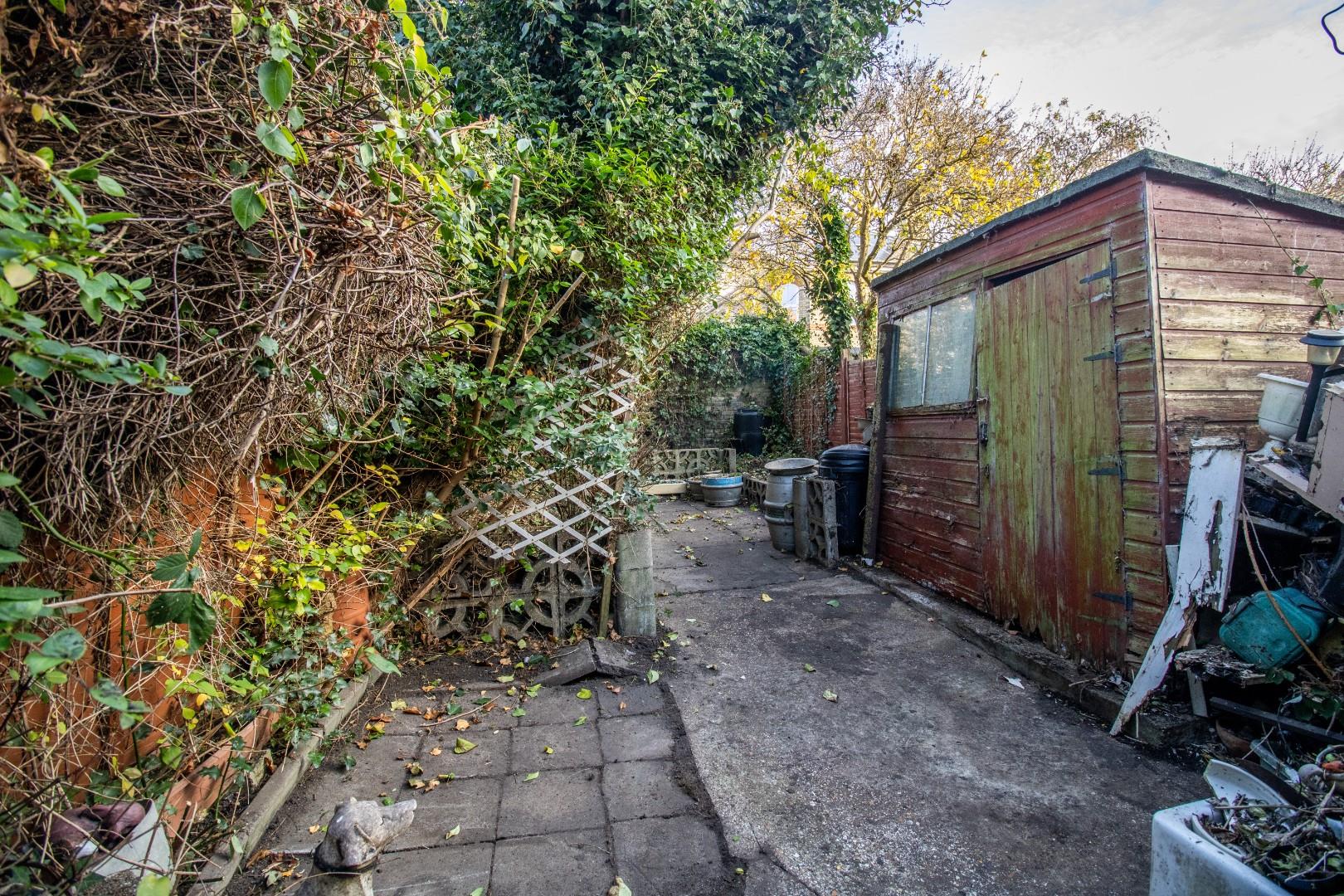 Outside, the rear garden is mainly paved and fully enclosed by walls and fencing. There is also a timber shed and raised borders.