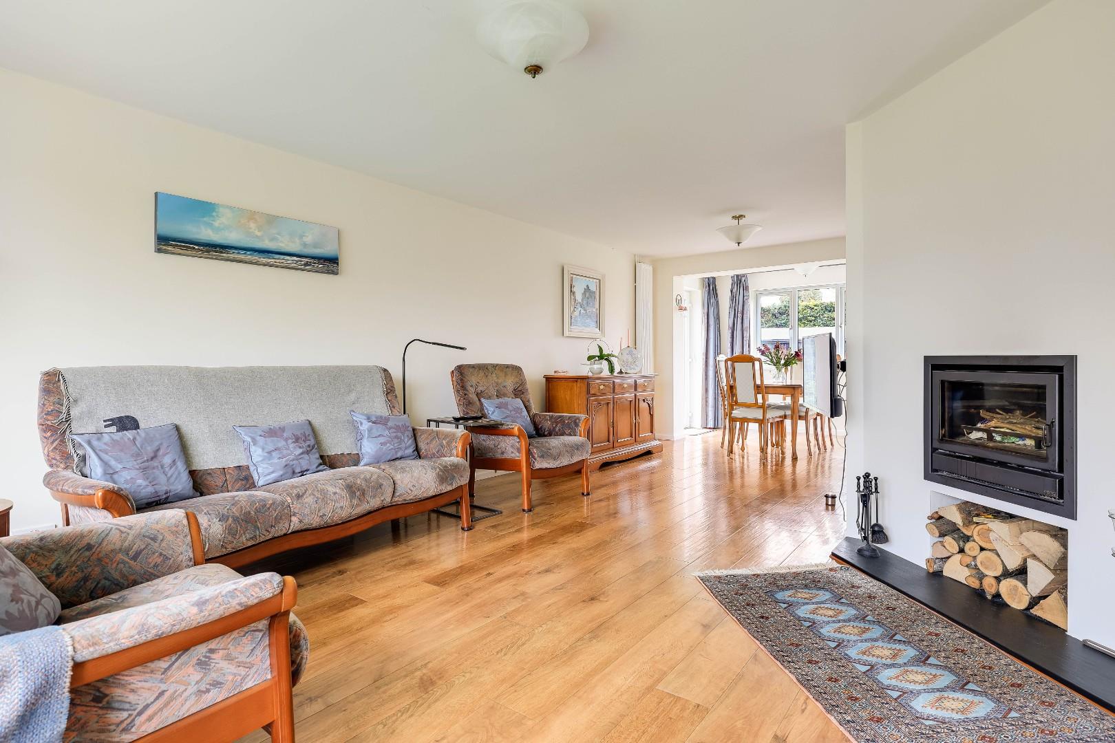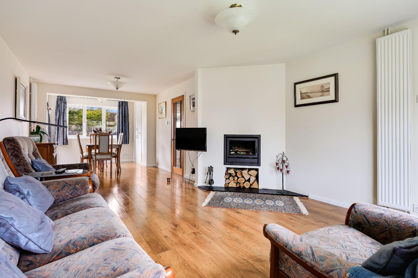 Outside, there is a lawned front garden with driveway providing off road parking for several vehicles leading to the garage with up and over door, power and light connected. Double gated side access leads to a generous Indian sandstone patio which has been designed to accommodate additional vehicles such as a caravan and mobile home. The rear garden is laid mainly to well maintained lawns, flower and shrub borders and beds, Indian sandstone path, vegetable and herb garden, wildlife pond, large timber shed and all enjoys good levels of privacy.