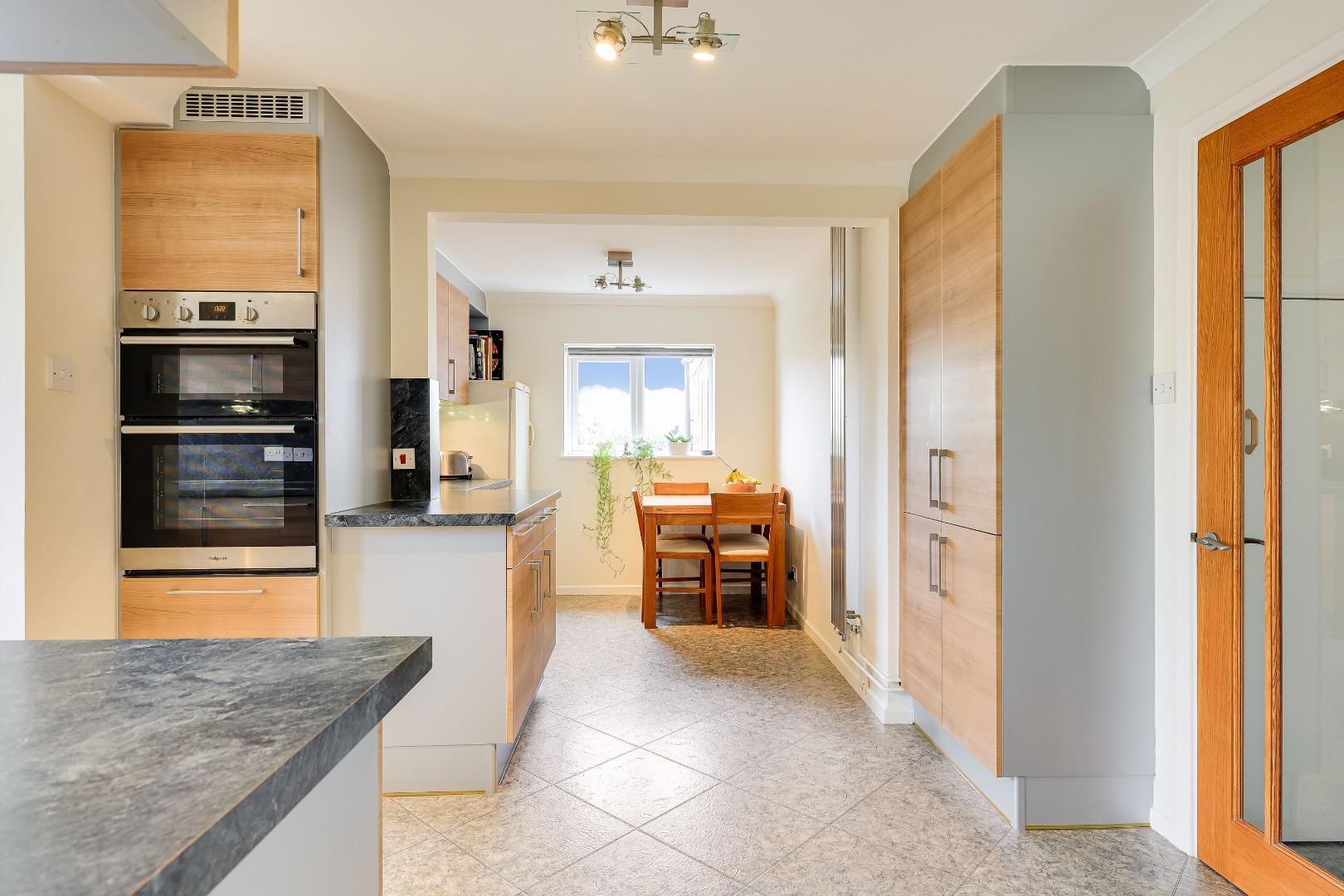 The accommodation comprises a welcoming reception hall with stairs to first floor accommodation, storage cupboard under, Karndean flooring and an office/play room just off. The sitting room boasts an inset multi-fuel stove and Karndean flooring which extends through to the dining room with views over the garden and door to outside. Both rooms have contemporary vertical radiators. The kitchen/breakfast room also overlooks the garden and is fitted with attractive contemporary cabinetry, ample fitted working surfaces with inset ceramic double sink unit with mixer tap, five ring gas hob, double oven, extractor, integrated dishwasher plus space for fridge/freezer. Just off the rear lobby, with door to outside is a cloakroom/WC/utility area/laundry area which boasts a low level WC, pedestal wash hand basin, space for a washing machine and tumble drier and a free-standing oil fired central heating Grant boiler plus Karndean flooring.