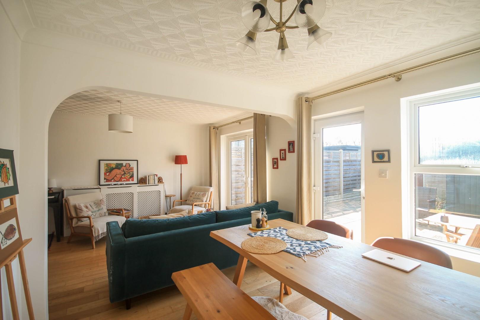 The accommodation briefly comprises an entrance hall with space for coats and footwear, with access to a generous living room with French doors to the rear garden. Adjoining the living room is a dining area, which benefits from southerly aspects and also has a door to the rear garden. The kitchen has been fitted with a modern range of units; integrated appliances include a double oven and a gas hob with an extractor over.