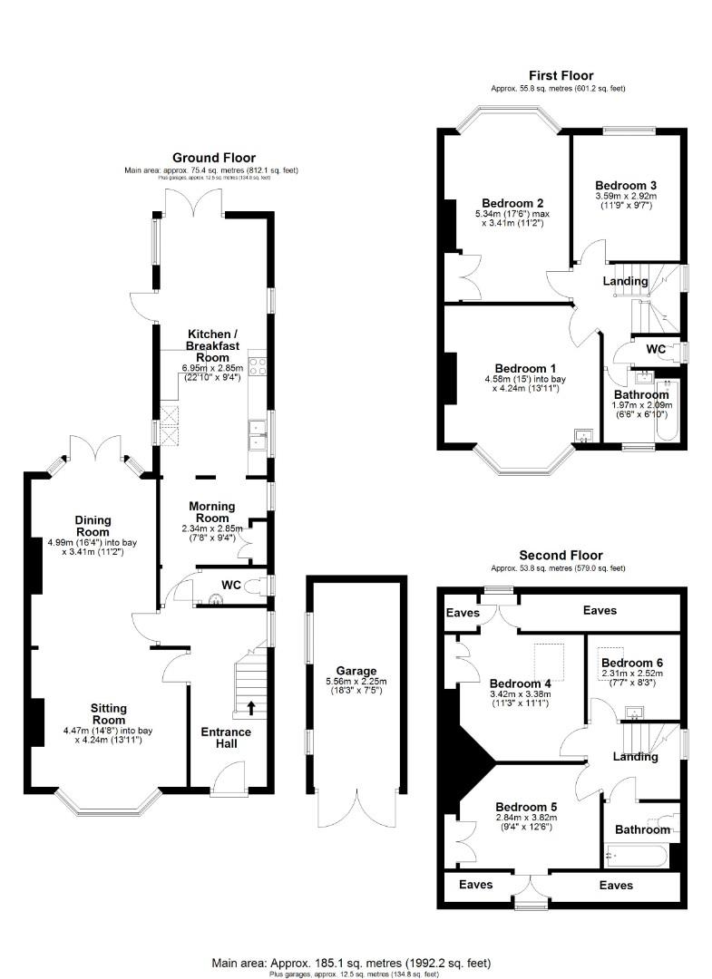 The second-floor level comprises two double bedrooms with extensive eaves storage space, a single bedroom/study and bathroom suite.