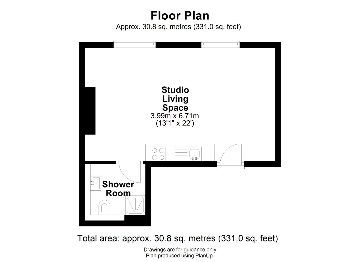 The property is located on the first floor of this attractive period conversion and provides an open plan living/dining/sleeping area with high ceilings, benefitting from a high degree of natural light.