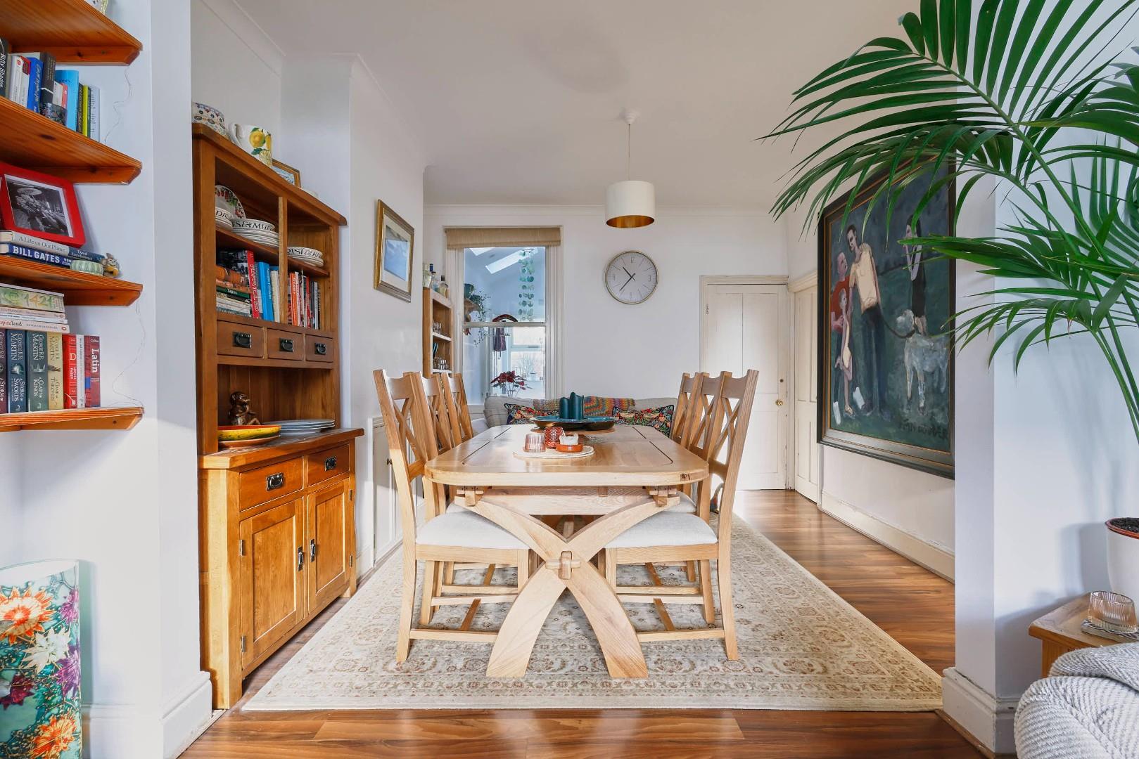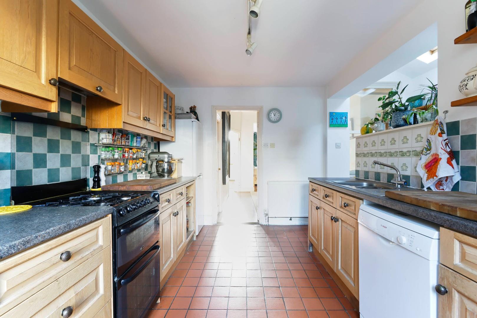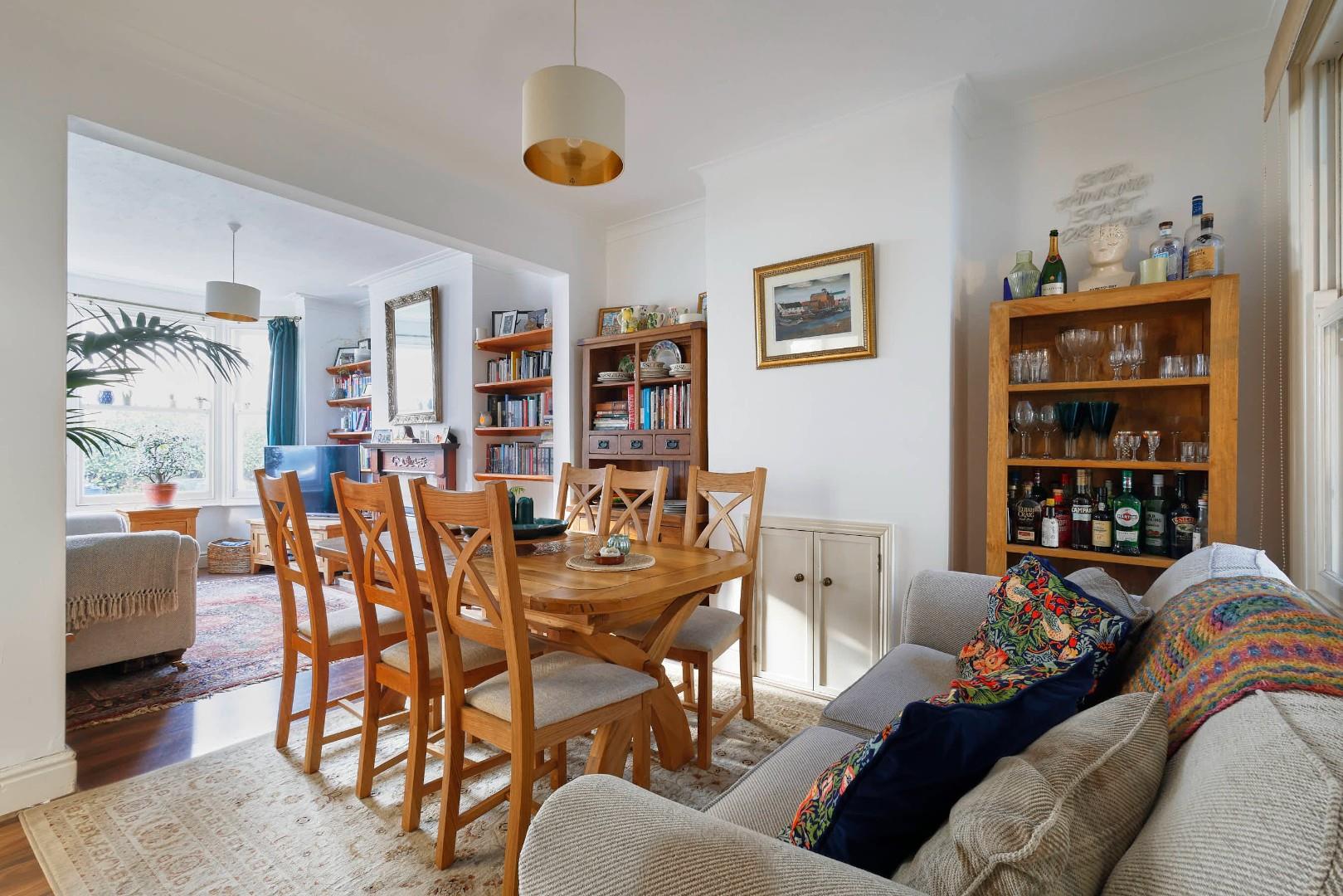 The property is entered via a solid timber door with a fanlight over, finished with laminate wood flooring, which continues through to the reception rooms. There is a bay-fronted sitting room with a feature gas fireplace and an adjoining dining room. The kitchen has been fitted with a range of base and eye-level units with French doors opening onto the rear garden. The side extension incorporates a utility area with two skylights and access to a cloakroom W.C.