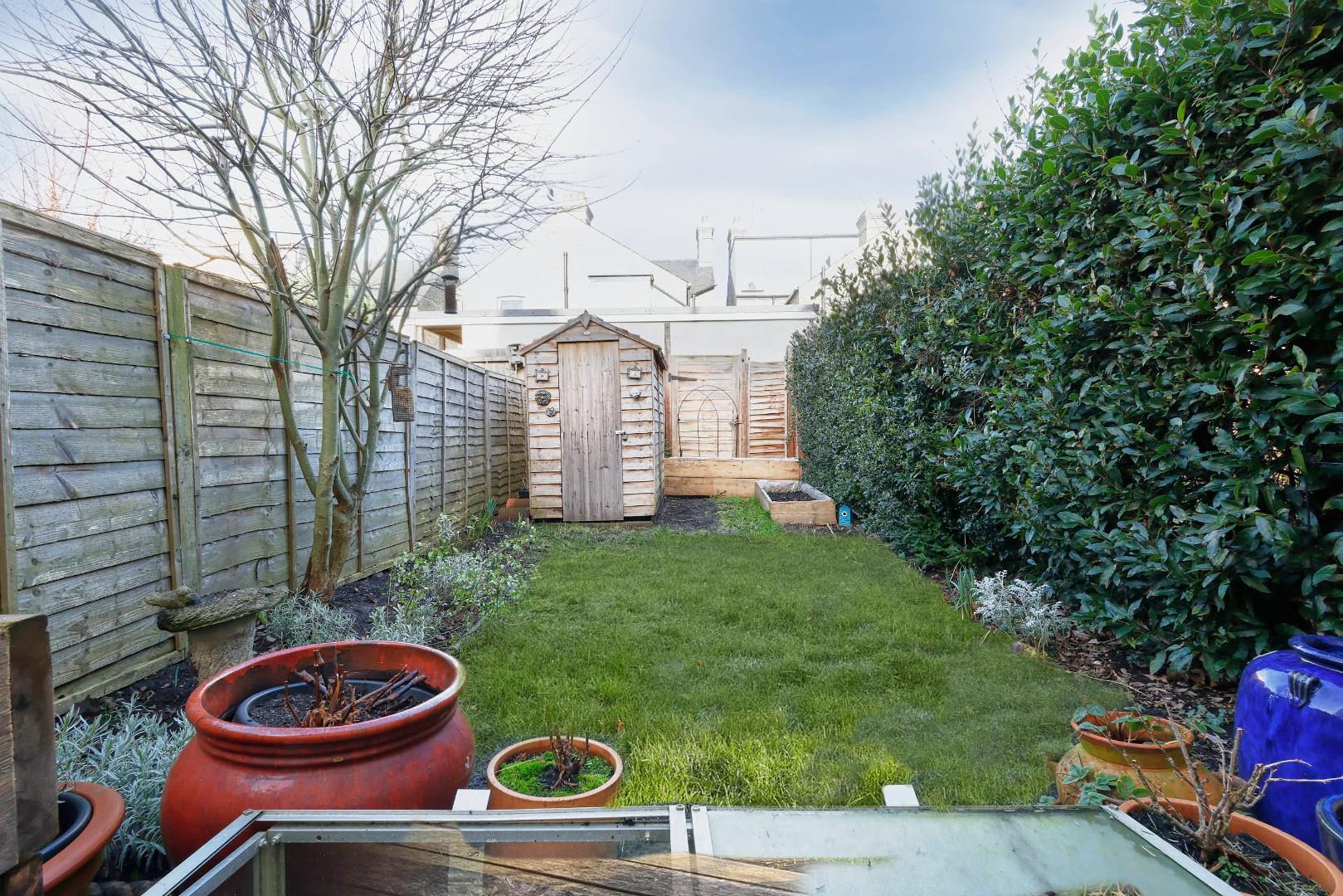 Outside, the front of the property is set back behind a shallow front garden with a mature hedgerow and a quarry-tiled pathway to the front door. The rear garden measures 30’ x 14’ is mainly laid to lawn and bordered with various shrubs, plants and trees. There is a storage shed at the foot of the garden and secure gated access providing access back to the front of the property.