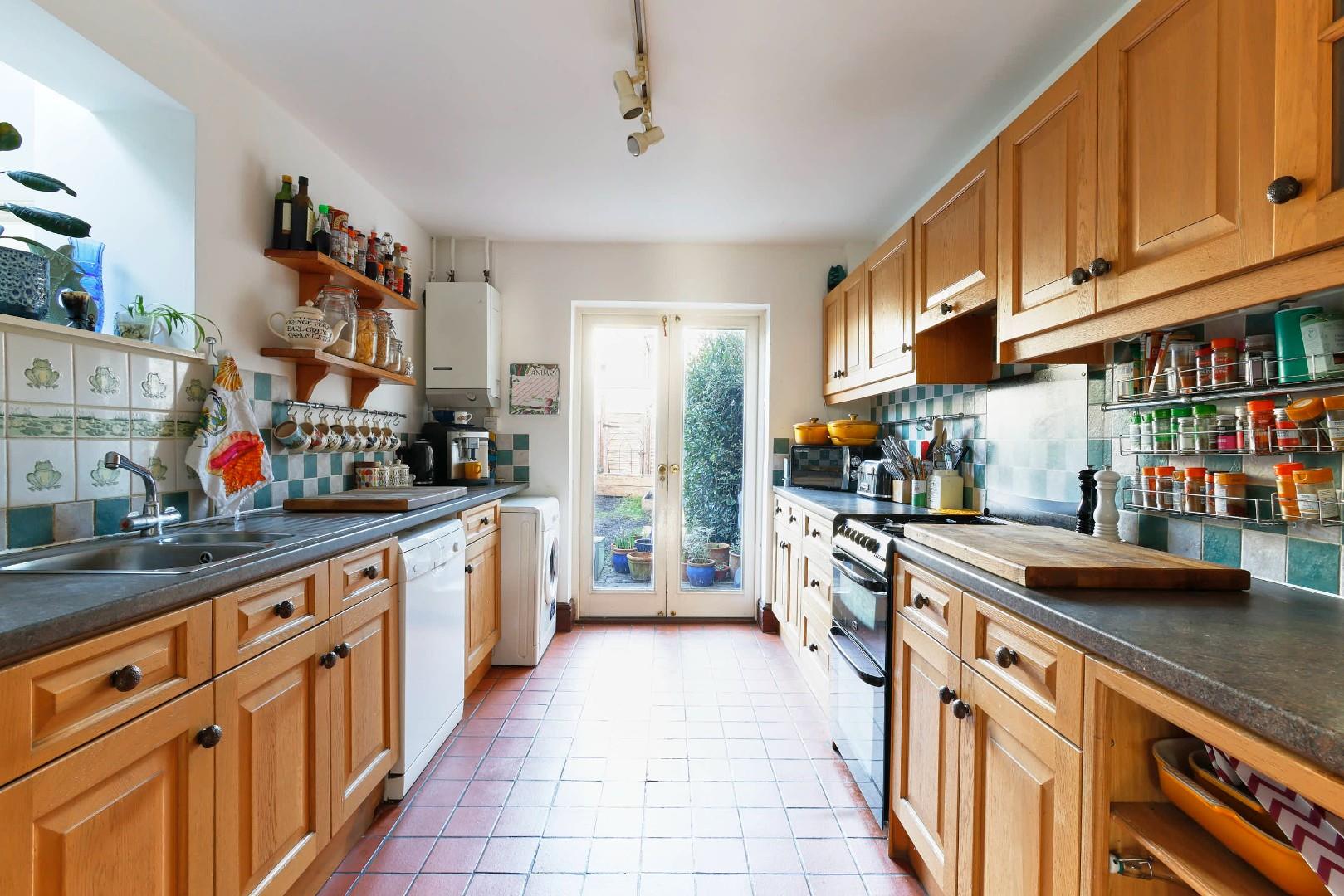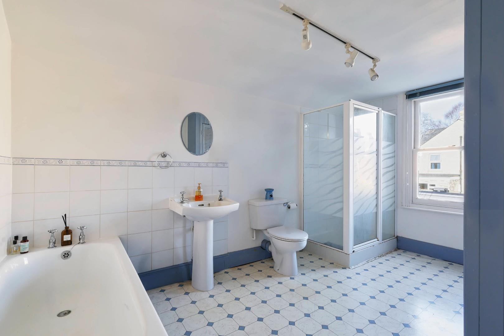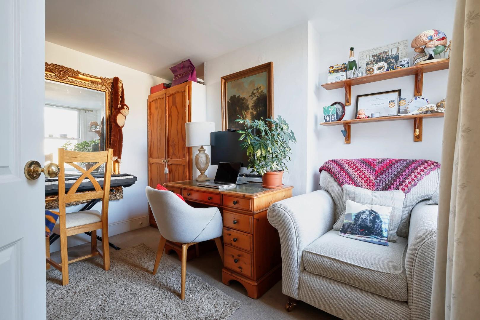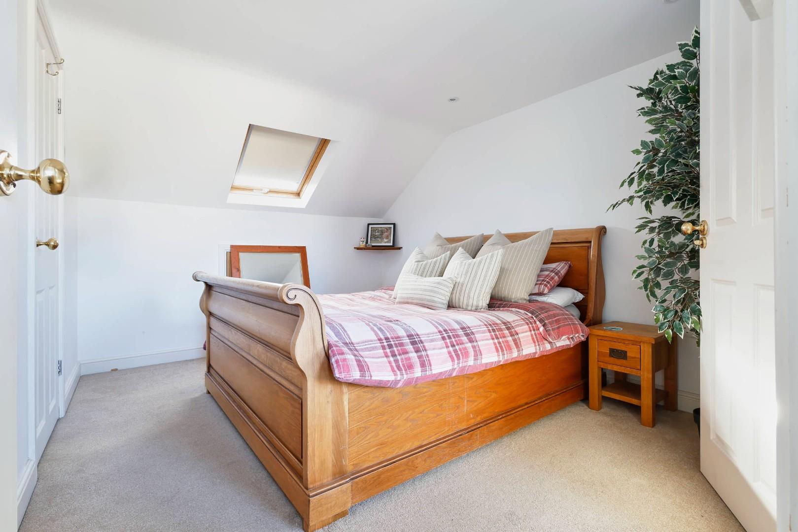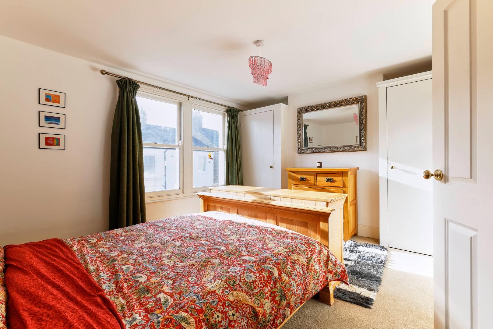 Upstairs, the accommodation is arranged over two floors, the first housing two double bedrooms and a large bathroom, which has been fitted with a white suite, including a separate bath and shower. The final bedroom is on the second floor and has an ensuite shower room, along with a built-in storage cupboard.
