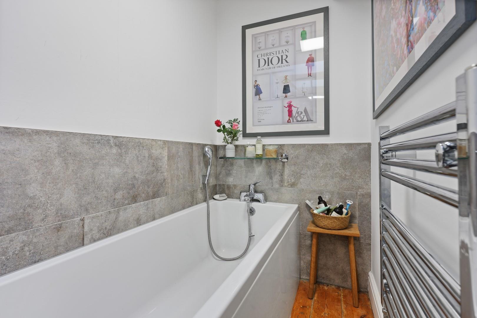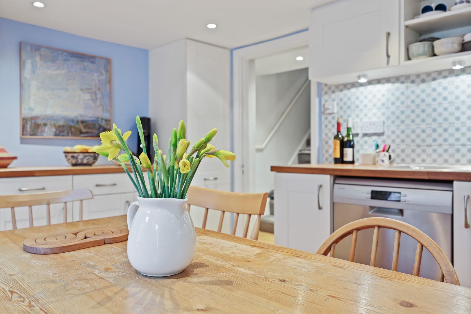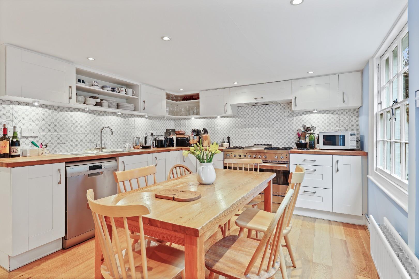 The lower ground floor is separated into two spaces. There is a well-equipped kitchen/breakfast room to the front with a walk-in utility/laundry room and an impressive spilt-level sitting/dining room with French doors opening to the garden, a gas-fired stove set in a decorative period fireplace and a useful understairs storage cupboard.