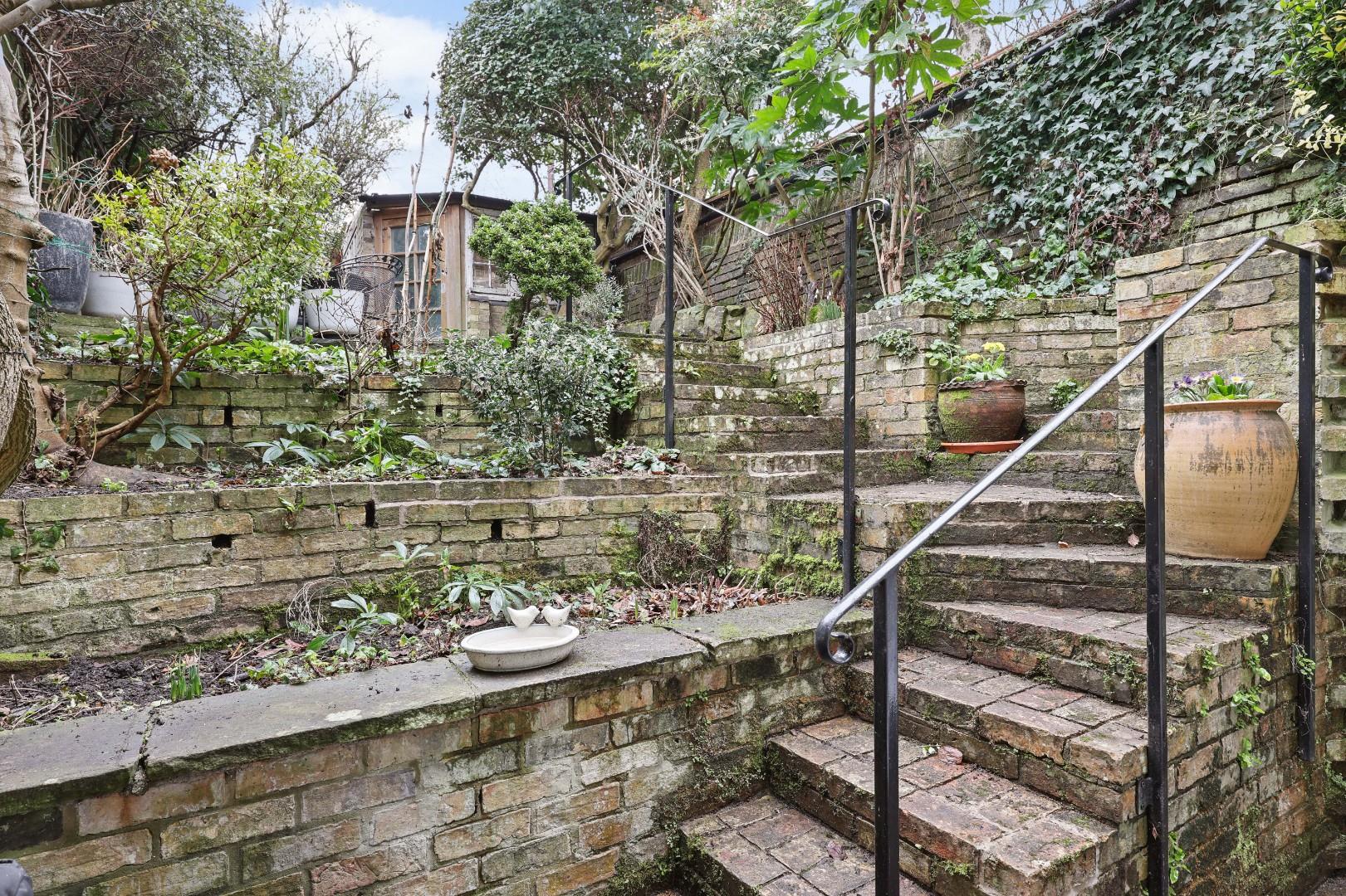 Outside, the walled rear garden is fully enclosed and provides pedestrian access to the garage. This charming garden is tiered and offers various seating areas and well-stocked borders, which include an established fig tree, wisteria and tree peonies. Access to the garage is via Mud Lane, which is approached from Parkside.