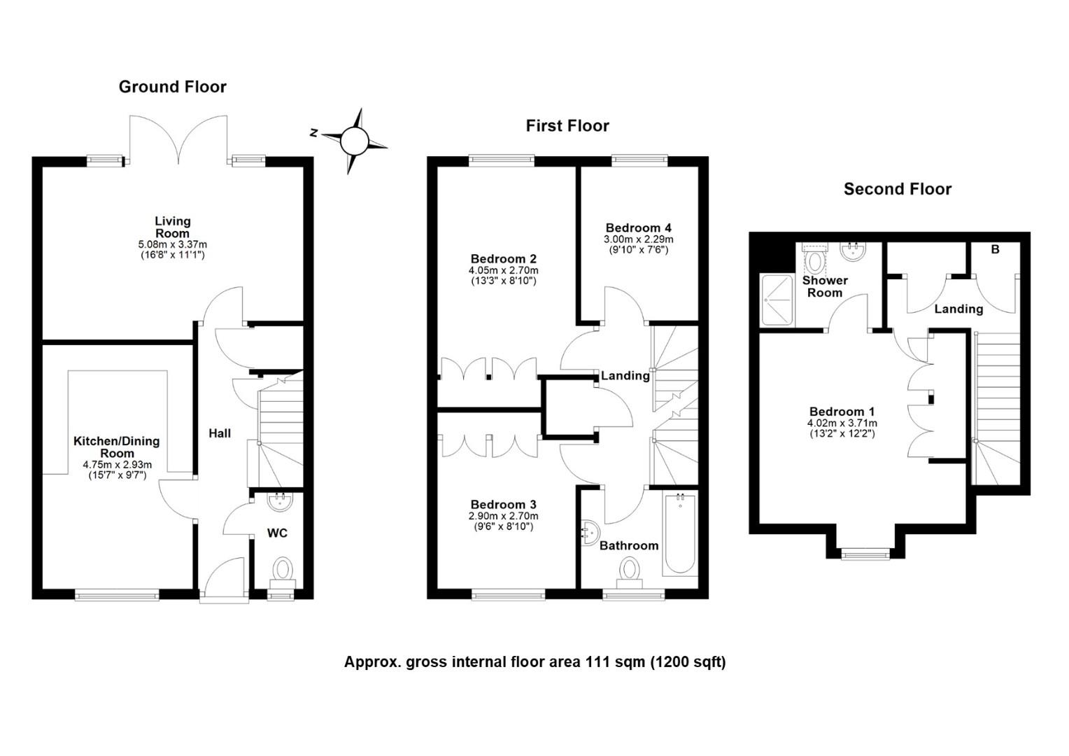 On the first floor landing, with stairs to the second floor there are three bedrooms, all with fitted wardrobe cupboards and a family bathroom. On the second floor, there is a generous master bedroom with en suite shower room just off.