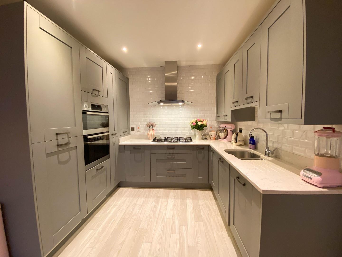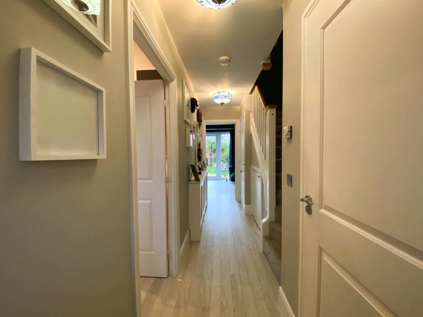 The accommodation comprises a welcoming reception hall with stairs to first floor accommodation, fitted storage cupboard which has space and plumbing for a washing machine and tumble dryer, karndean flooring and a cloakroom/WC just off. The kitchen/dining room is fitted with attractive, modern cabinetry, fitted working surfaces with inset one and a half sink unit with mixer tap and bevel drainer and a host of integrated appliances, these include a four ring gas hob, double oven, extractor , full height fridge/freezer and dishwasher. The sitting room boasts French doors out to the rear garden.