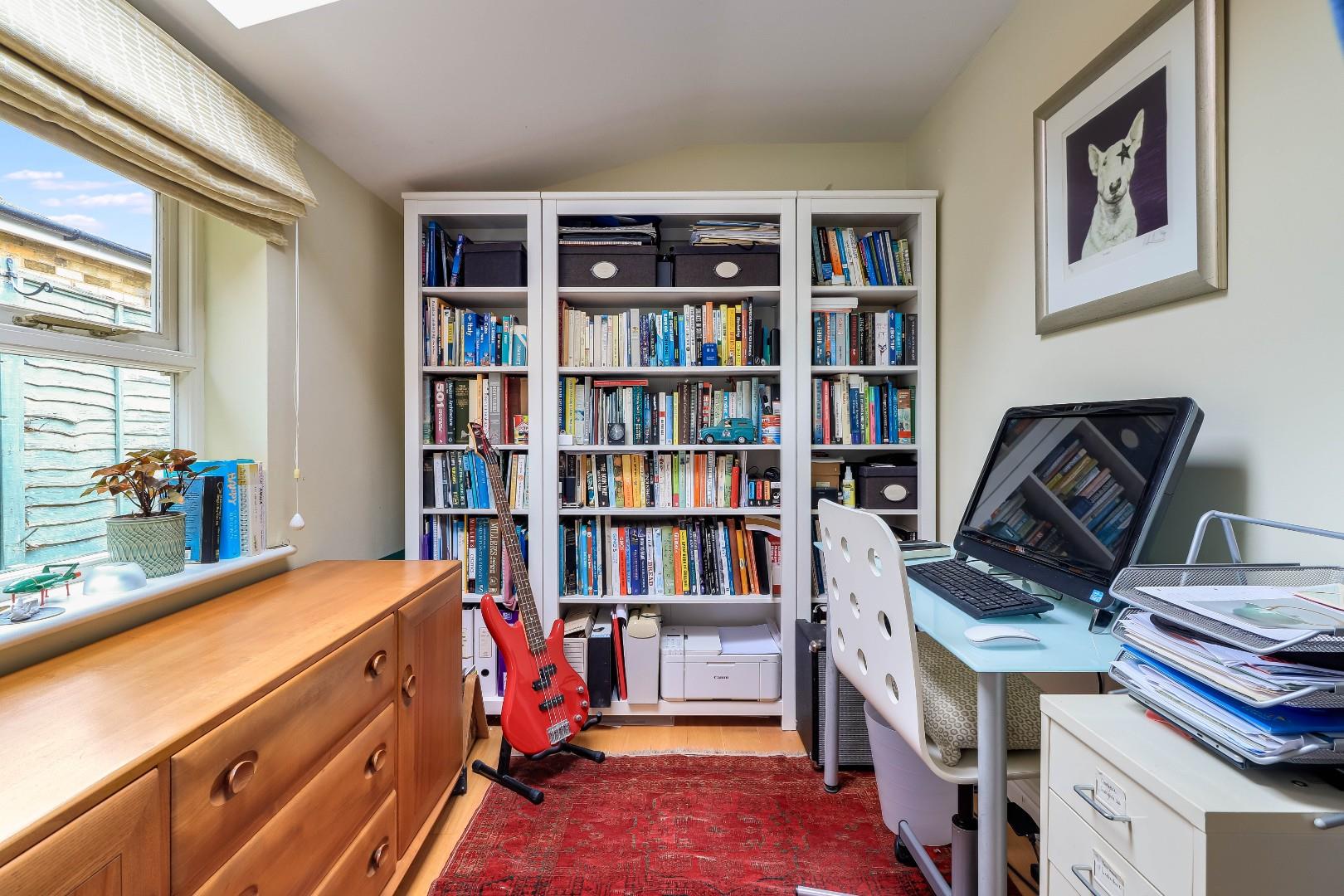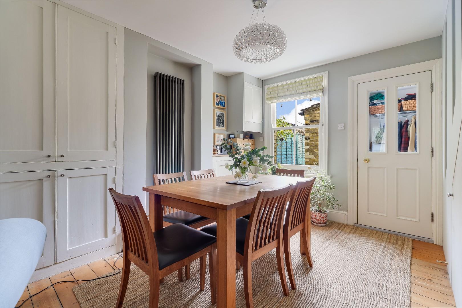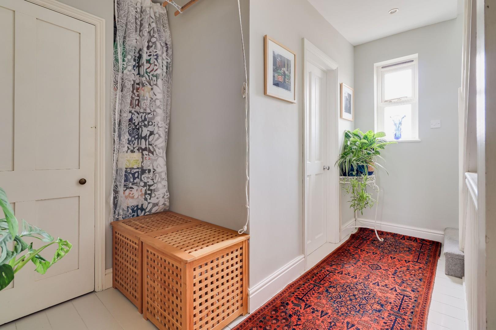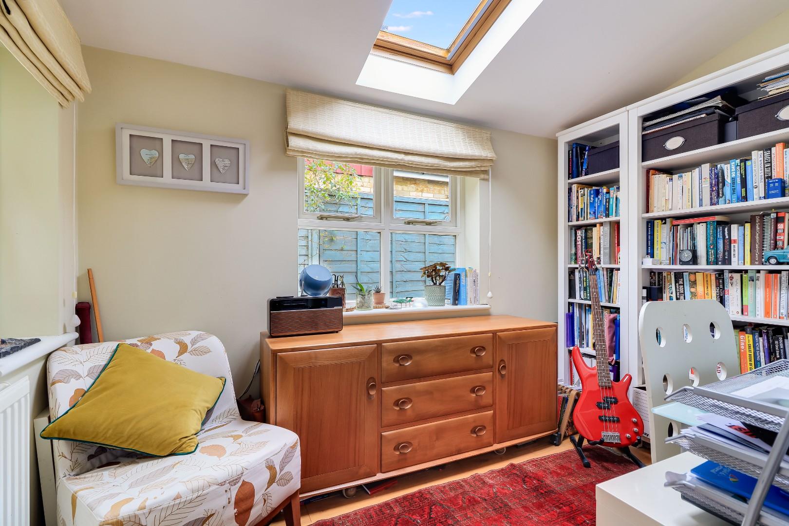 To the first floor is a large landing area with an airing cupboard, off the landing is a large master bedroom with a sash window towards the front as well as a fitted shelved cupboard to the side of the chimney stack. Completing the first floor is a family shower room with a low-level WC, sink with vanity unit below, a heated towel rail and a large walk-in shower. To the second floor is the converted attic space which has been converted into a bedroom. The attic room is ideal for a teenager or as a guest room with a feature pitched wooden window overlooking the rear garden and two Velux windows drawing in further light. The feature window is 'Rationel’ composite powder coated aluminum and timber. The sash windows in the property are made from hardwood timber, double glazed, 'heritage' windows made by a local craftsman.