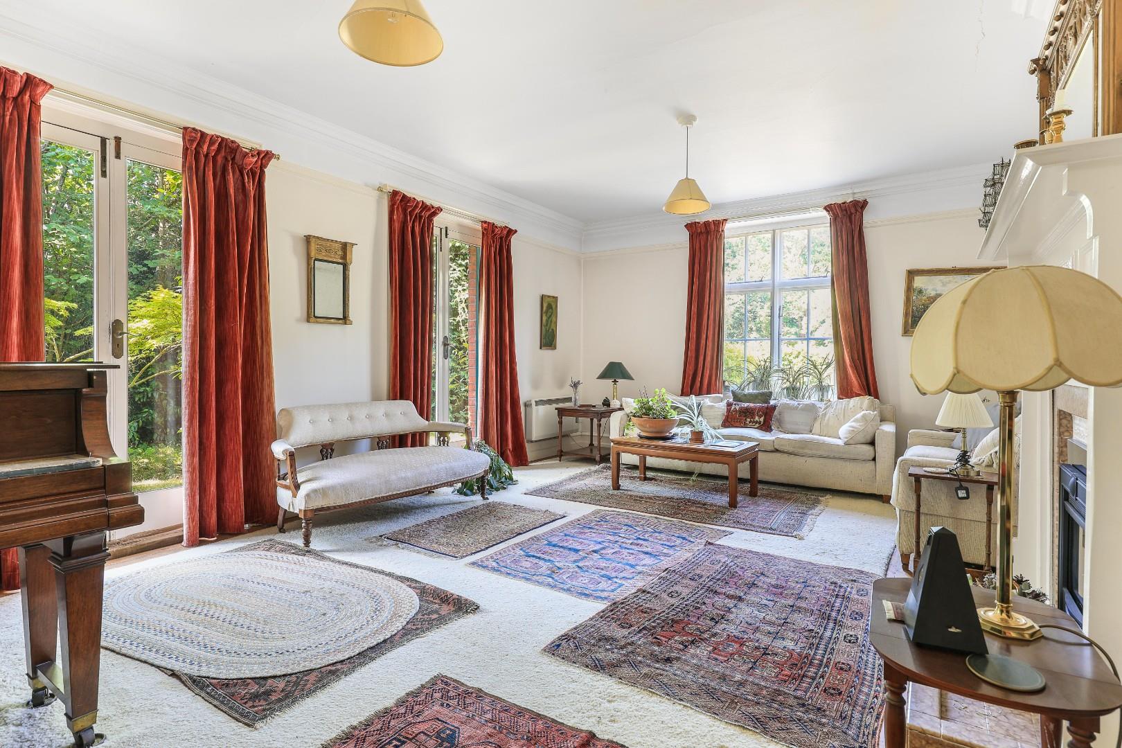 The spacious entrance hall with a grand staircase and solid wood parquet flooring opens to the main reception rooms including a dual aspect drawing room with access to and complete views of the formal gardens, an elegant dining room with an impressive fireplace and a large bay window and a study with a corner bookcase. The open plan kitchen/dining room was altered in the 1970s and provides a matching range of storage units and drawers, working surfaces, space for a range of appliances and a walk-in pantry. There is access to the garden from the dining area. A utility room and cloakroom/WC completes the ground floor accommodation.